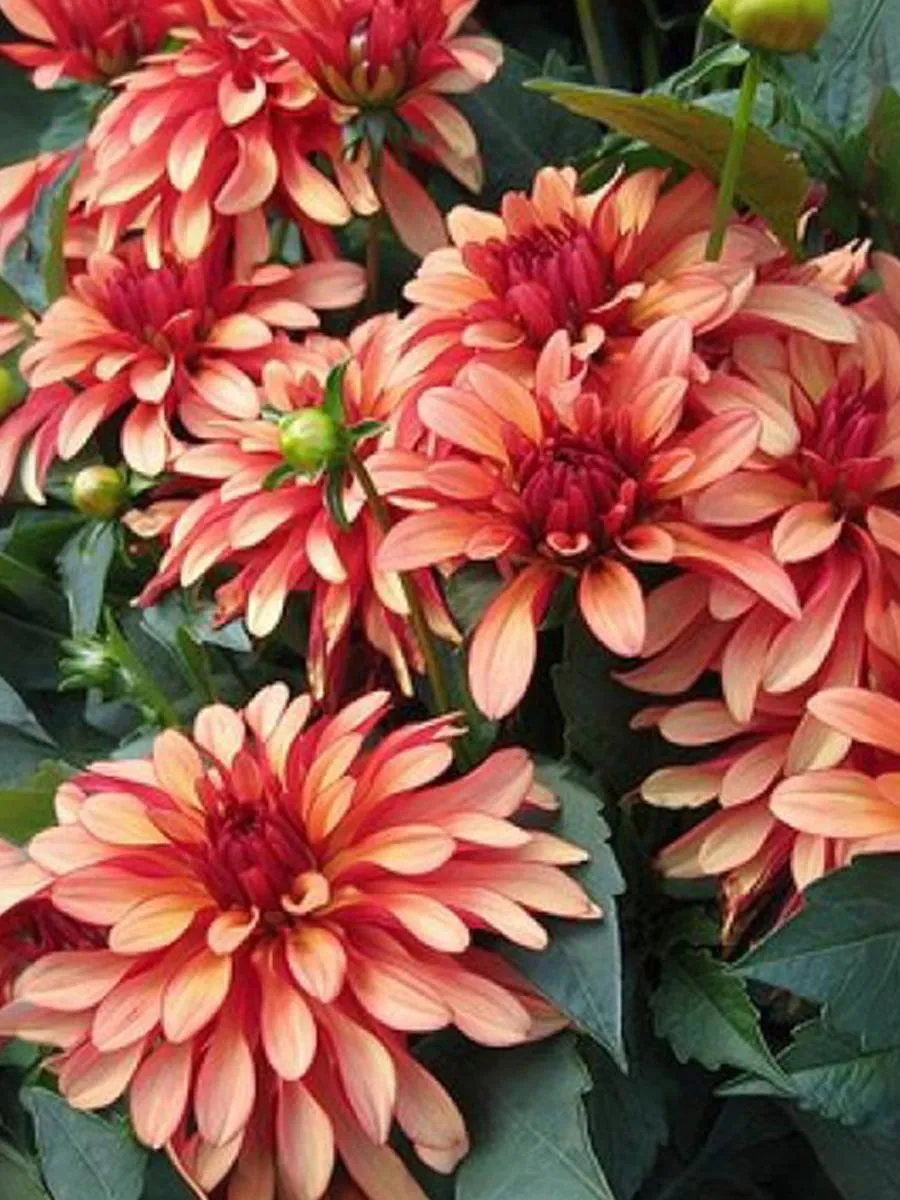 Сорт Геллери Арт Деко имеет очень яркие и необычные соцветия: они оранжево-кирпичные с розоватым оттенком, лепестки как бы подсвечиваются изнутри.
