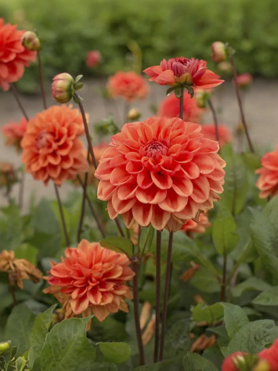 Это сочный и яркий сорт. Цветки с овальными и закругленными лепестками насыщенного апельсинового оттенка, что позволяет свету и теням играть на каждом оранжевом сегменте и, кажется, затенять и изменять части цветка, придавая ему глубину и многогранность. Этот георгин будет прекрасно смотреться в качестве бордюрного растения в вашем саду или сможет добавить яркую изюминку на ваш внутренний дворик или террасу в контейнере. Высота: 40-50 см Диаметр цветка: 8-10 см.