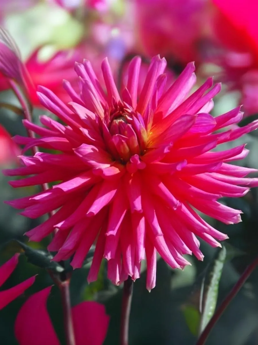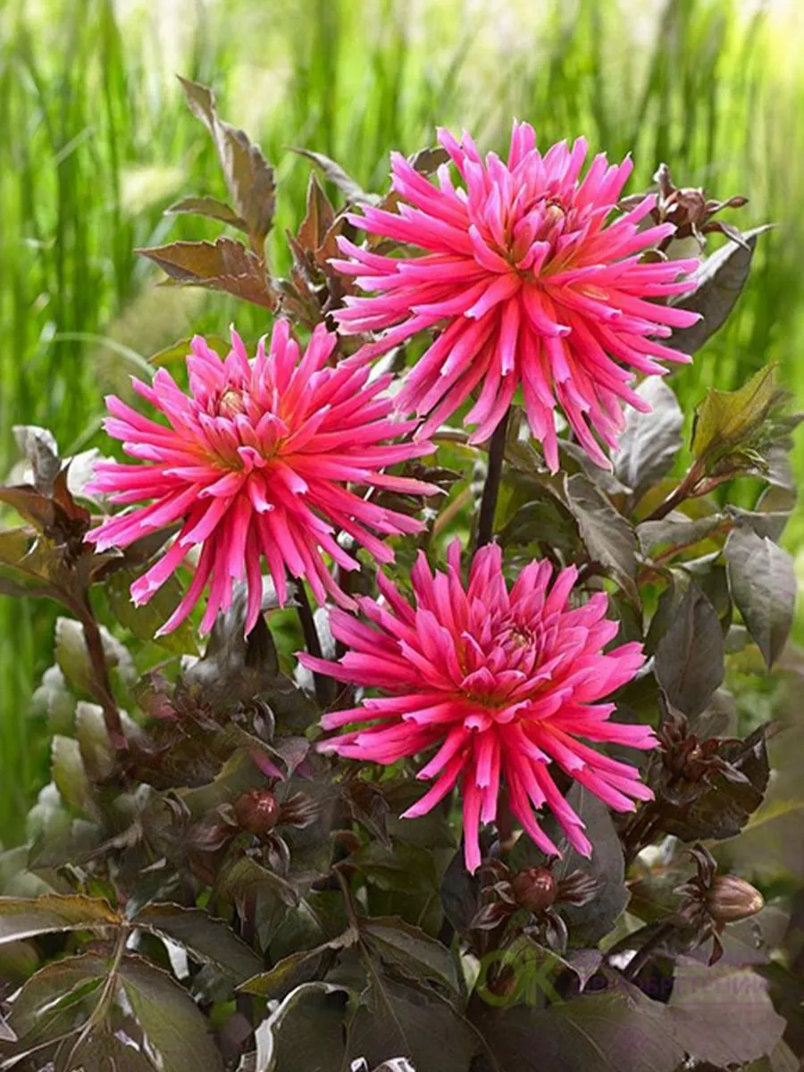 Восхитительный георгин с яркими розовыми соцветиями в окружении бронзово-зеленой листвы, придающий кусту дополнительную декоративность! Цветение обильное и продолжительное. Подходит для патио и выращивания в горшках. Высота: 40-60 см Диаметр цветка: 10-15 см.