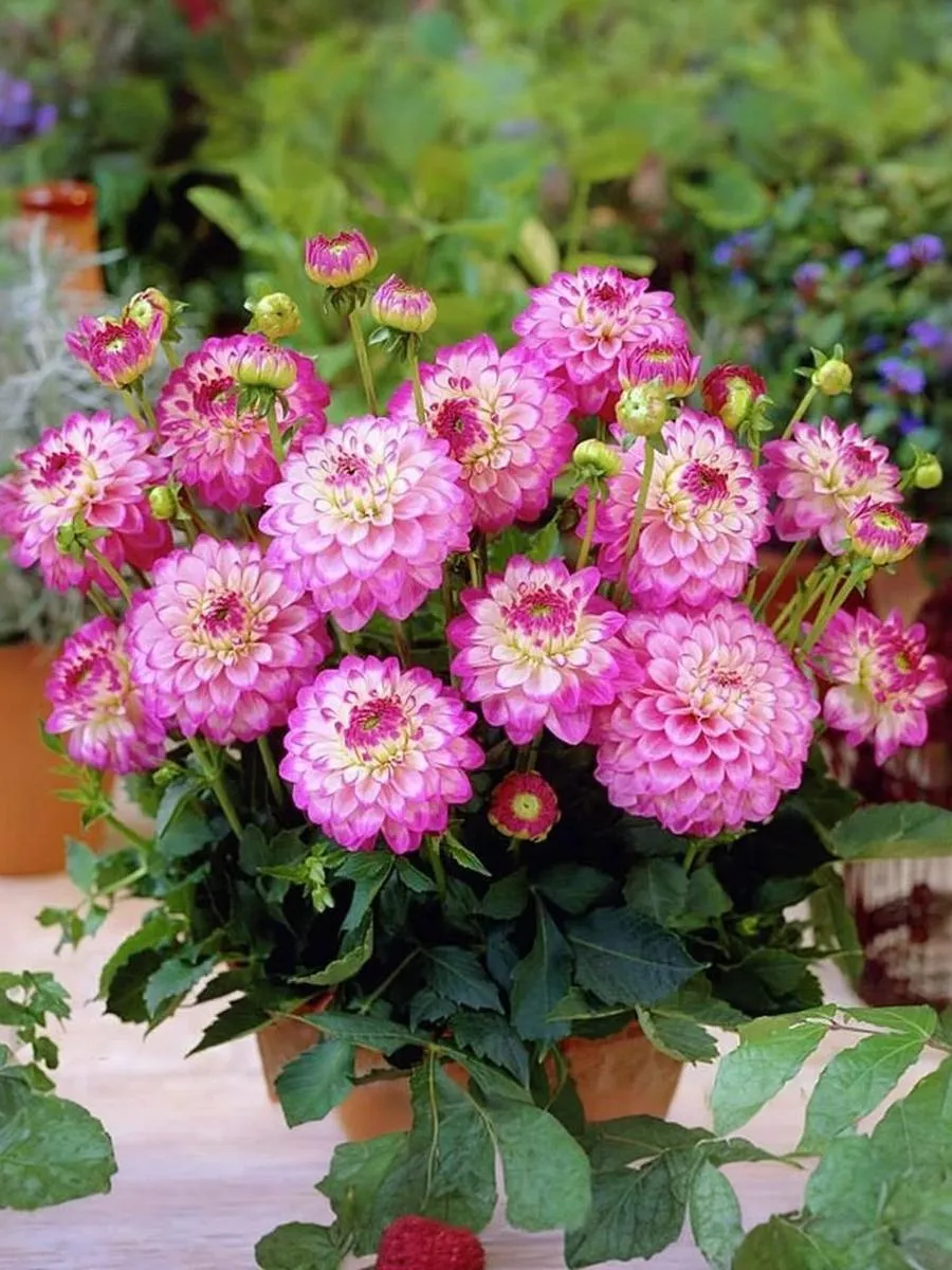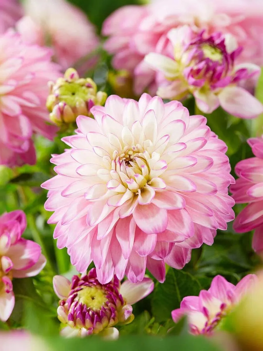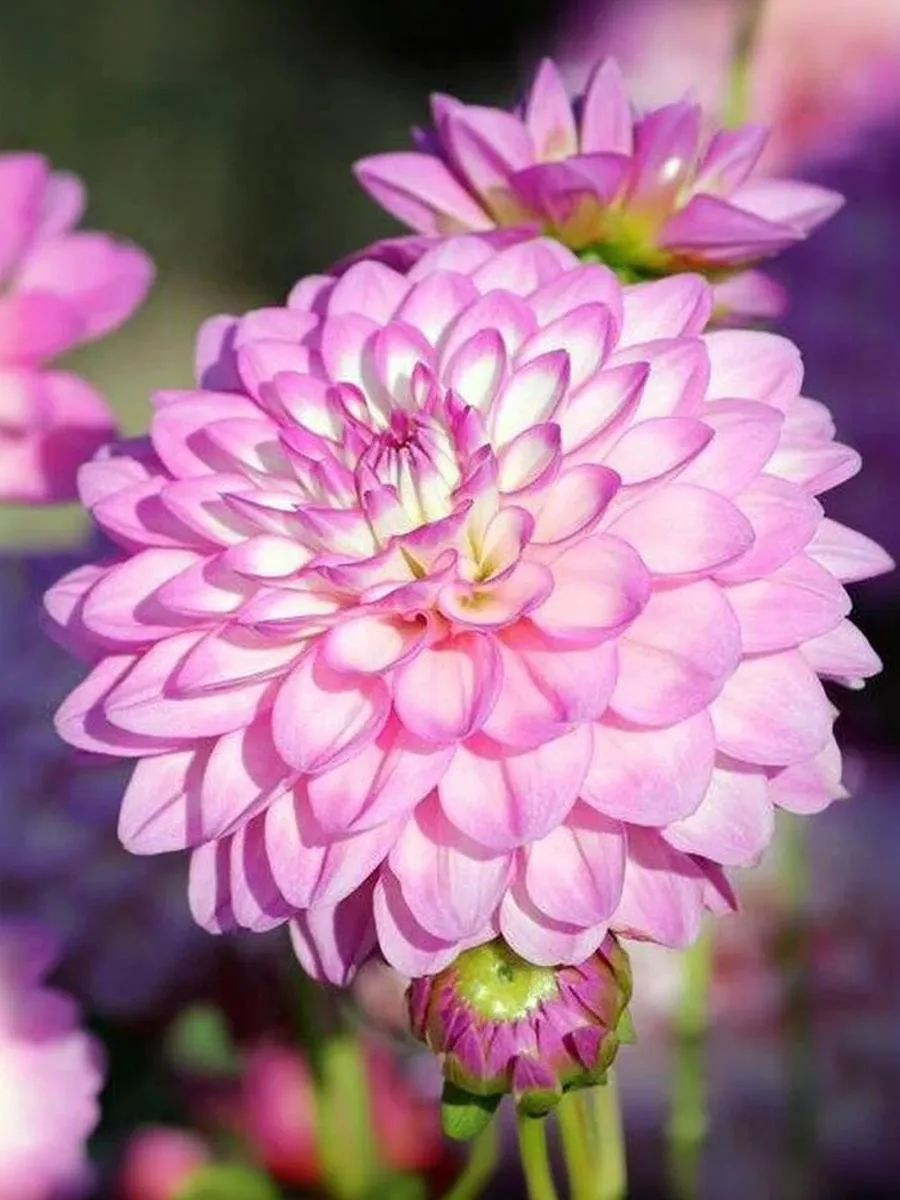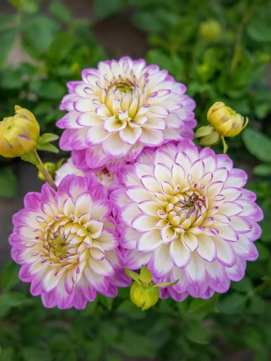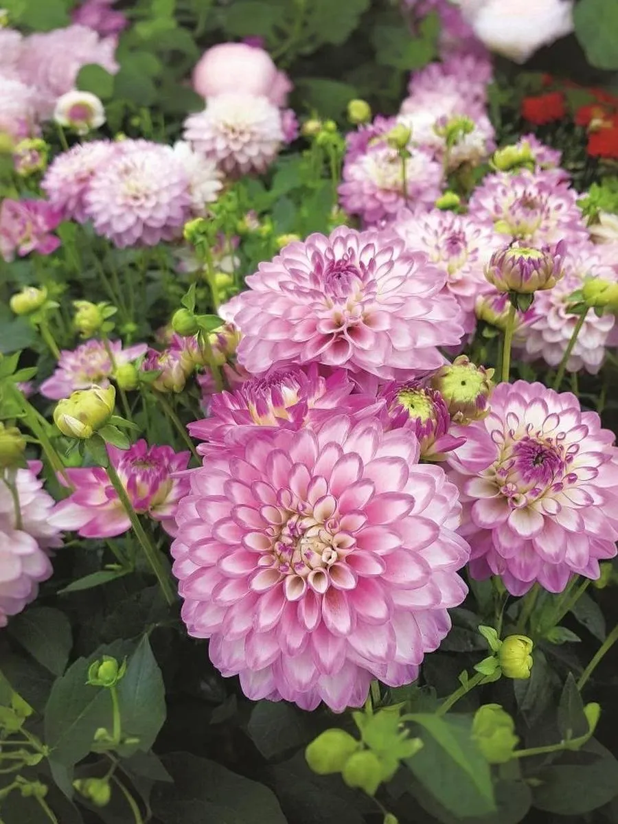 Нарядный и обильноцветущий сорт! Эффектные молочно-белые соцветия с лилово-розовой окантовкой лепестков будет прекрасно смотреться как в открытом грунте, так и в контейнерных посадках. Высота: 50-80 см; Диаметр цветка: 13-15 см.