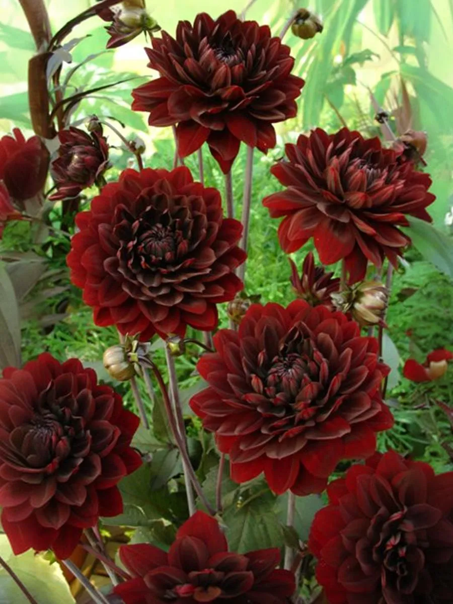 Темно-красный георгин, почти шоколадного цвета. Длинные цветоносы, отличная, долго сохраняющая свою свежесть, срезка!