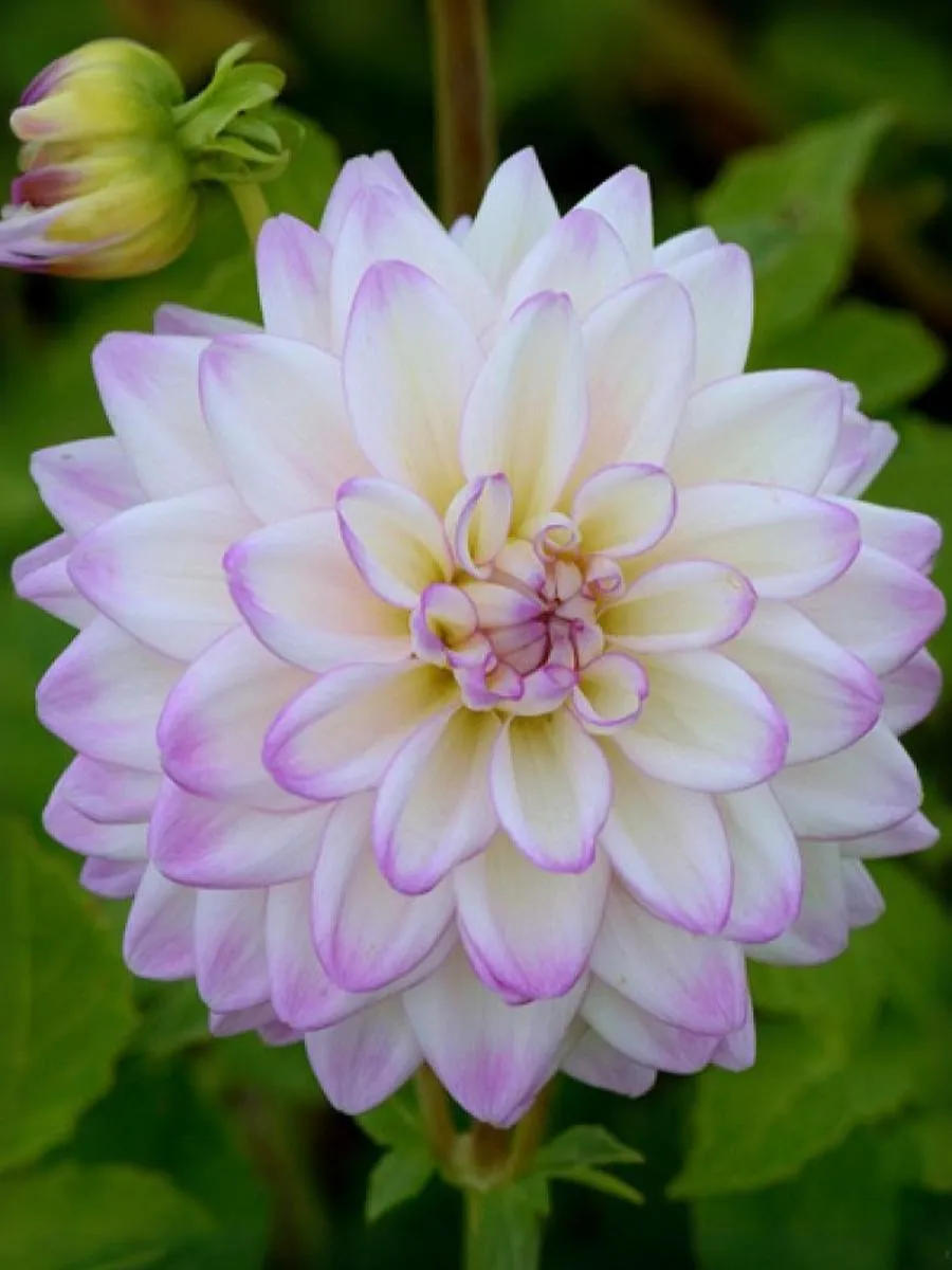 Невысокий декоративный георгин с крупными цветками удивительной окраски: красивое сочетание нежно-лилового и белого цвета делает эту георгину объектом всеобщего восхищения! Этот трогательный цветок подходит как для озеленения вашего сада, так и для украшения балкона или лоджии. Высота: 60-70 см Диаметр цветка: 10-15 см