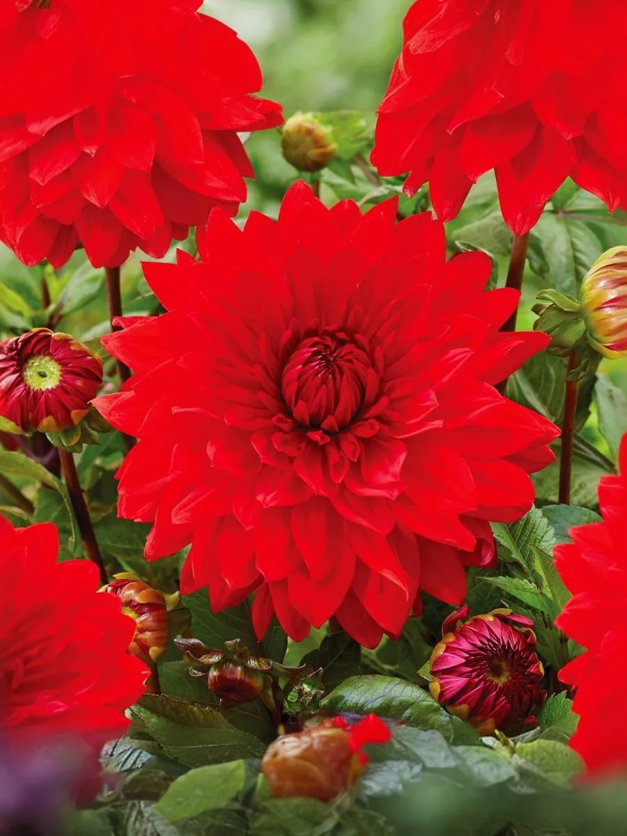 Это растение, которое привлекает внимание своими красивыми и насыщенными цветами. Этот георгин имеет цветы темно-красного оттенка диаметром от 9,5 до 10 см. Этот сорт прекрасно подходит для срезки цветов, и ее бутоны будут радовать свежими и красочными букетами в течение длительного времени. Высота: 100 см