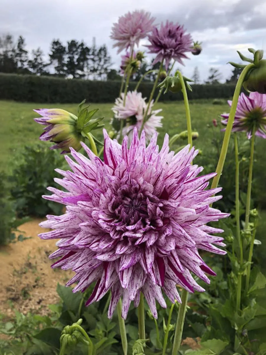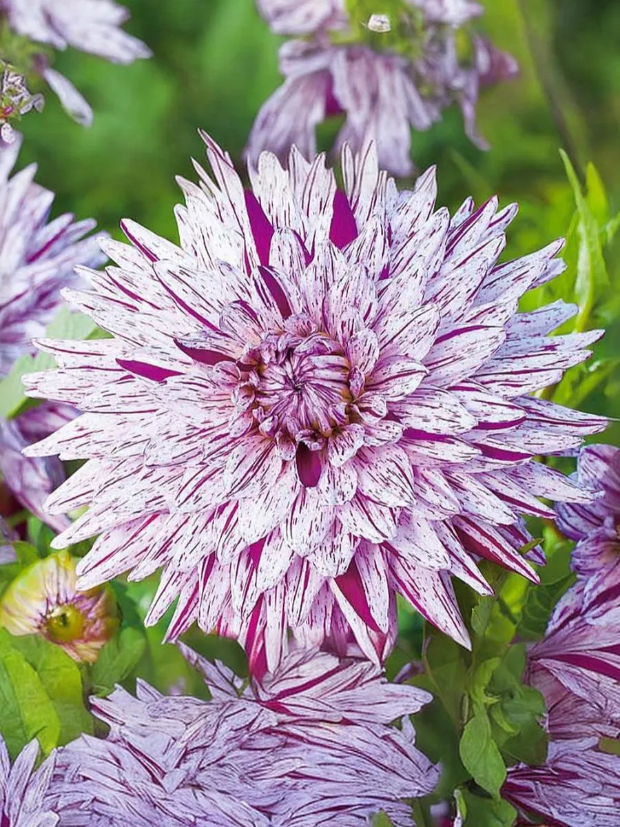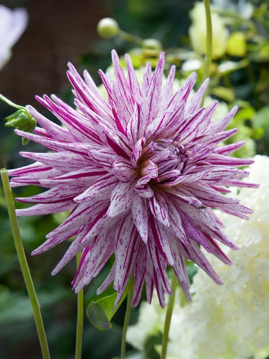 Этот необыкновенный георгин добавит современных тенденций в цветнике. Молочные лепестки, густо пронизанные вишневыми штрихами и полосами, иногда сливающимися в сектора - абстрактное дополнение, способное закружить садовые цветы в бесконечном хороводе. Космические декорации и букеты! Высота: 90-100 см Диаметр цветка: 10-15 см