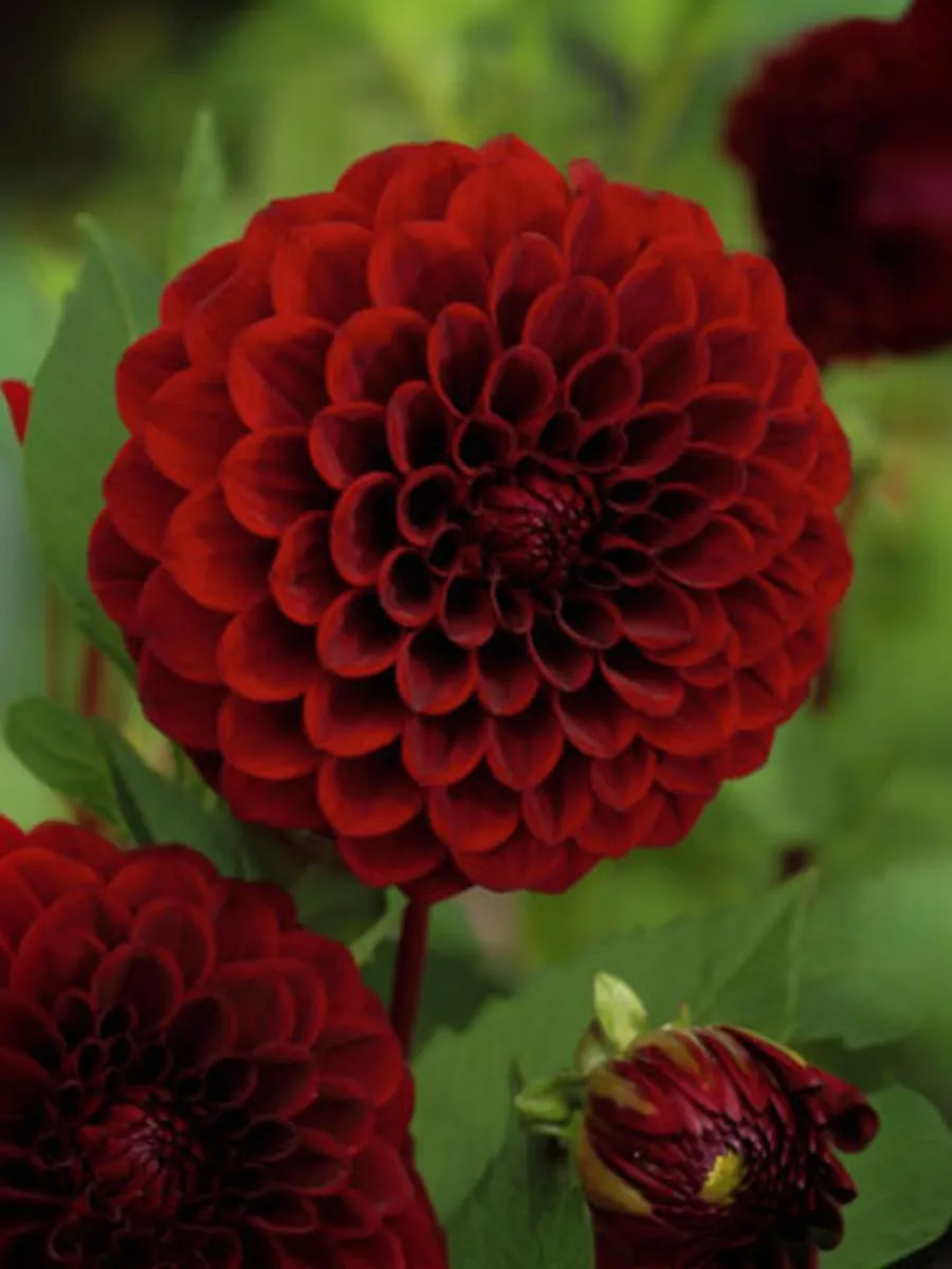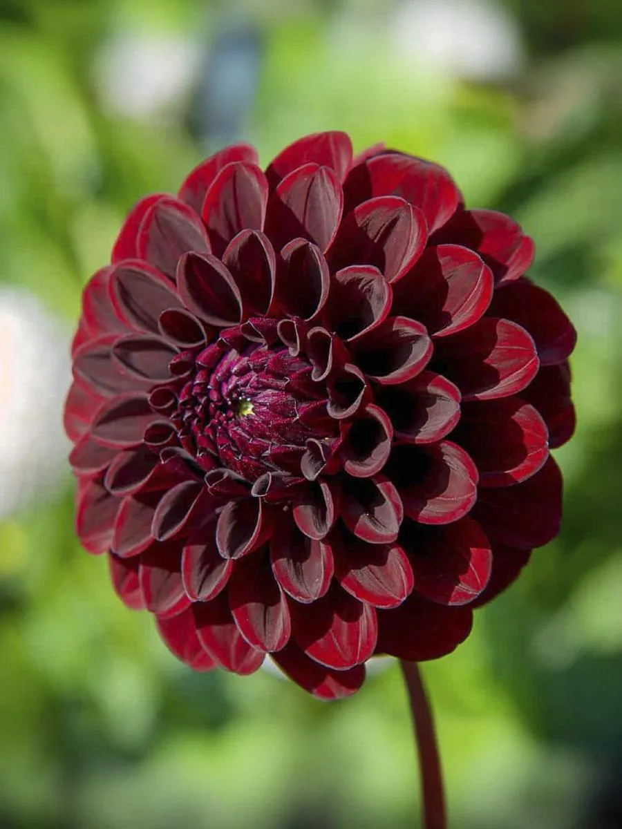 Георгин Блэк Даймонд — истинное воплощение роскоши. Цветок насыщенного оттенка, глубокий гранатовый, который при определенном освещении кажется почти черным. Его цветки напоминают сверкающие рубины, отражая свет и создавая эффектный визуальный акцент. Высота растения достигает 80–90. Диаметр цветка: 10 см.