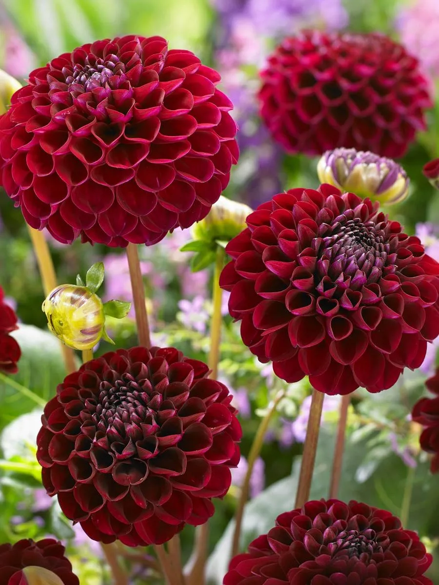 Классический помпонный георгин с цветами тёмно-бордового цвета. Таинственный и чарующий сорт. Куст раскидистый с зеленой, блестящей листвой. Кружевные, яркие шары украсят садовый участок. Цветение обильное и продолжительное. Высота: 70-80 см Диаметр цветка: 7-8 см .