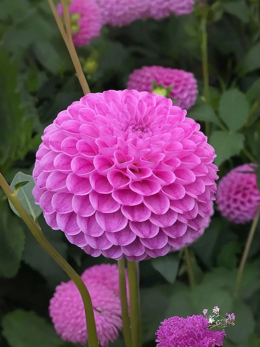 Невероятно изящный помпонный георгин с лепестками насыщенного сиреневого цвета. Цветки плотные, на высоких цветоносах идеально подходят для срезки. Период цветения июль-сентябрь. Высота: 80 см Диаметр цветка: 7-8 см
