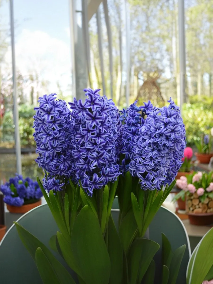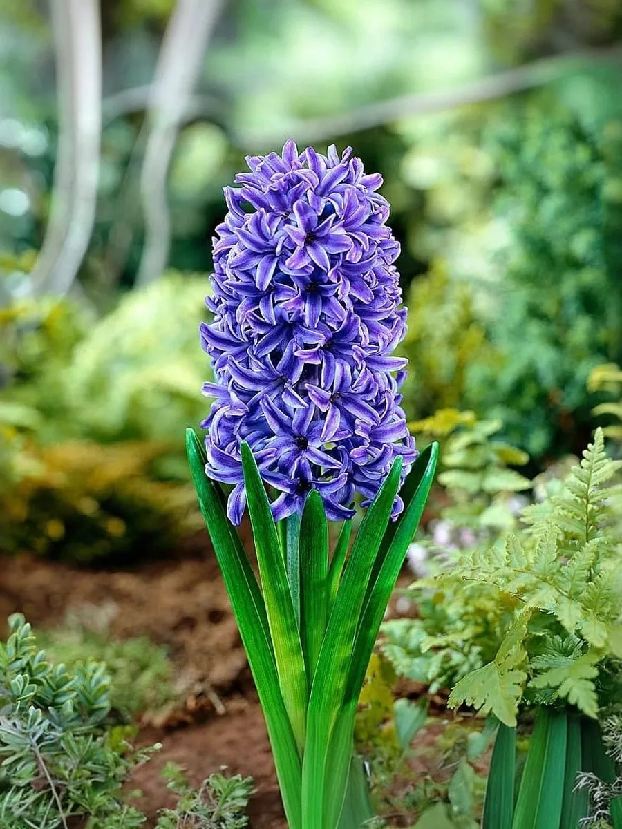 Раннецветущий многолетник достигает в высоту 20 – 30 см. Цветочная стрелка прочная и прямая. Листья прикорневые, ремневидные, окрашенные в темно-зеленый цвет. Направлены они в разные стороны. Расцветает гиацинт достаточно рано (март – апрель). Цветки многочисленные, колокольчатой формы, собранные в кистевидные соцветия. Лепестки окрашены в темно-голубой цвет с примесью фиолетового оттенка. По краям размещены узкие полоски. В полном роспуске диаметр цветка до 5 см. Длится цветение до 3 недель. Все это время растение источает приятный аромат.