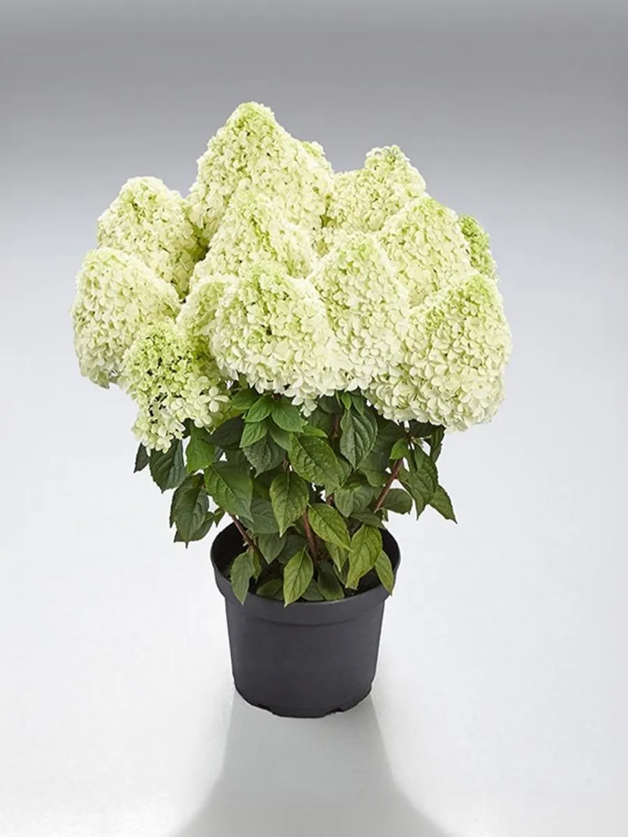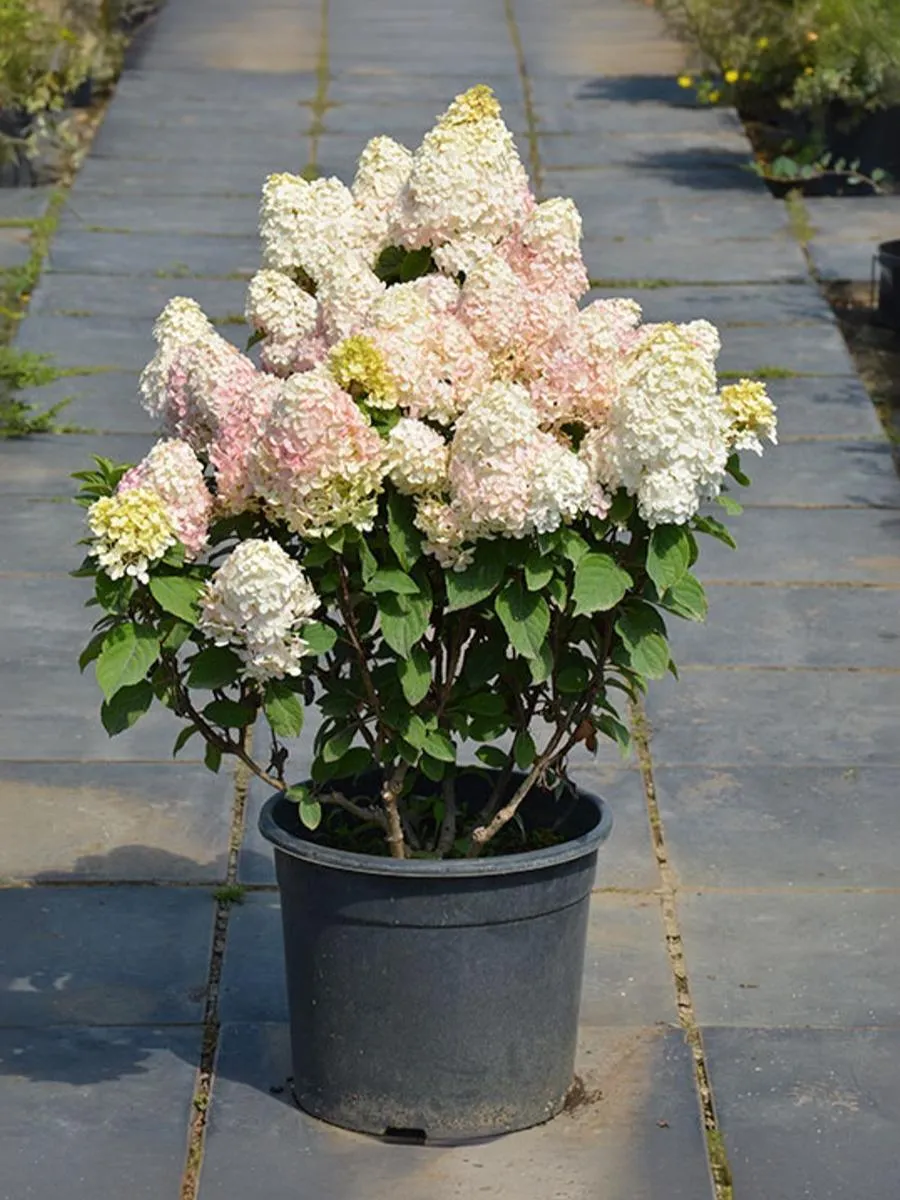 Куст компактный, прямостоячий или слегка раскидистый, высотой 80-100 см и диаметром 80-100 см. Побеги толстые, крепкие, сильные, красного оттенка. Куст держит форму и не разваливается. Особенности цветения Главными особенностями цветения гортензии Пандалус являются ее обильность и продолжительность. Цветение начинается уже в июне и продолжается до октября. Во время вегетации происходит изменение окраски цветков: они становятся светло-жёлто-зелёными, кремовыми, ярко-розовыми или пурпурно-красными. Соцветие имеет конусовидную форму диаметром 11-14 см и длиной 13-18 см. Оно состоит из большого количества стерильных цветков плотной структуры диаметром 2-3 см. Аромат у этого сорта легкий.