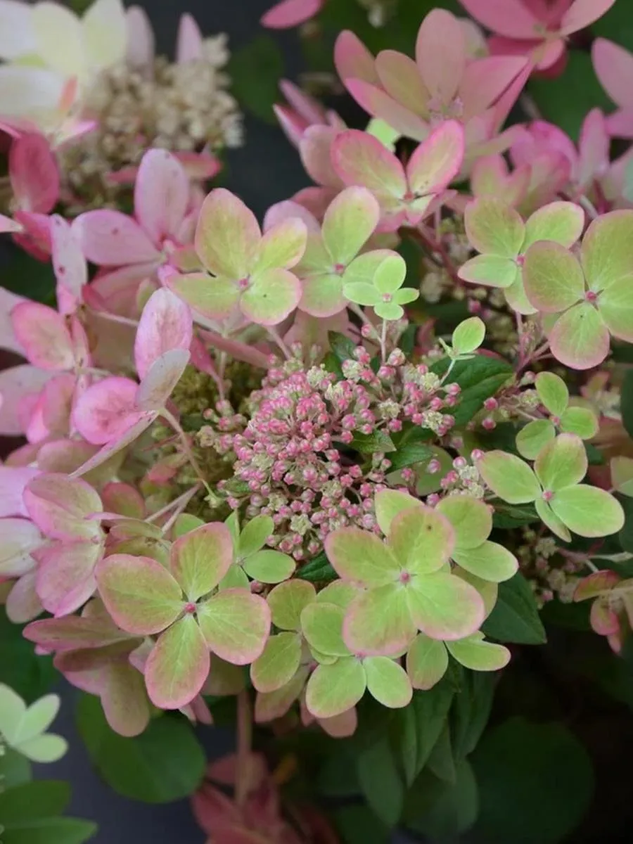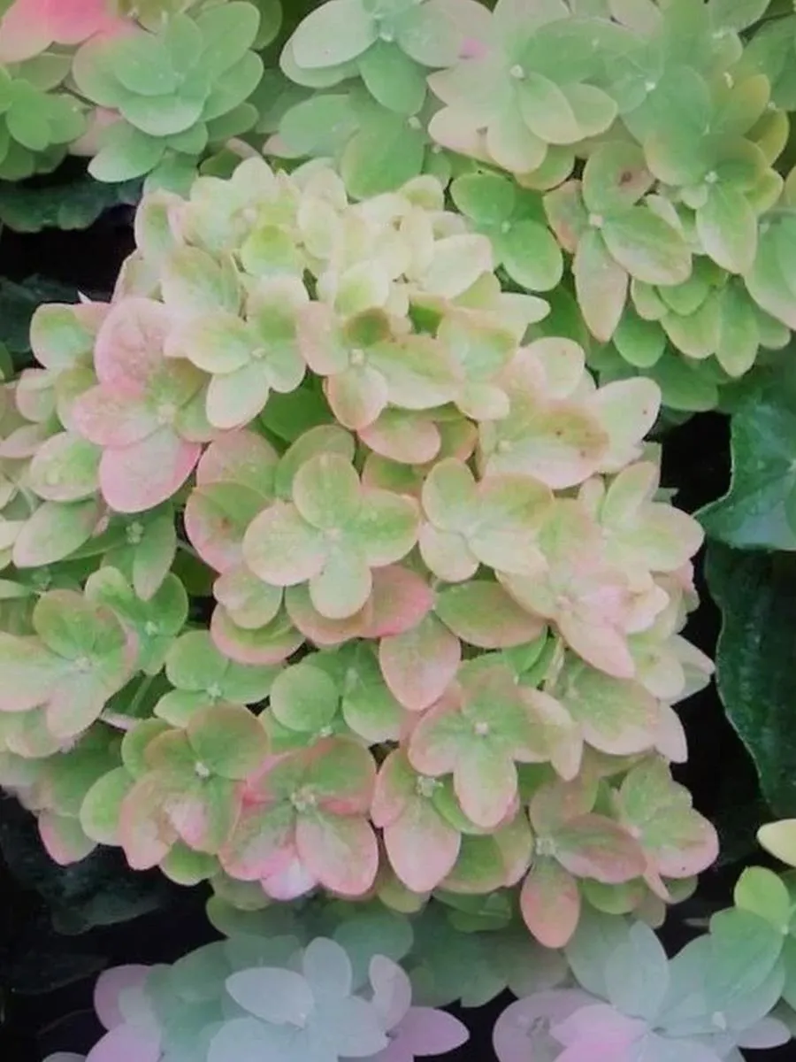 Высота кустарника до 1,5 м, ширина 1,3 м. Соцветия крупные, пышные до 30 см, с ароматом. Окраска соцветия удивительная: белая-кремовая-зеленоватая-фисташковая-коралловая-розовая - винная. При переходе от одного цвета к другому происходит постепенное смешение "пастель", что придаёт соцветиям оригинальную окраску. Смена цвета за сезон 2-7 раз. Цветение обильное и продолжительное. Первое цветение в год посадки. Листья темно-зеленые. Куст быстрорастущий.