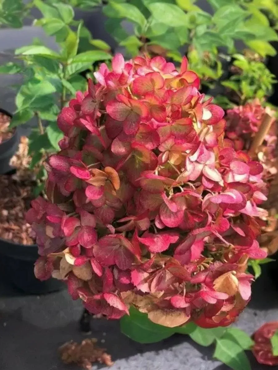 Гортензия метельчатая Петит Черри - относятся к карликовым сортам гортензий рост 50 см и ширина 40 см. Листья зеленые, зацветает рано в июне белыми цветами, но уже в июле меняет свою окраску в розовый цветет до октября. Хорошо отзывается на подкормки. Подходит для контейнерного выращивания на террасах маленьких садах и на срезку, и конечно же для приусадебного и городского озеленения. Почва должна быть кислая, влажная, но без застоя воды.