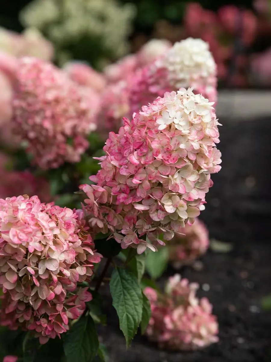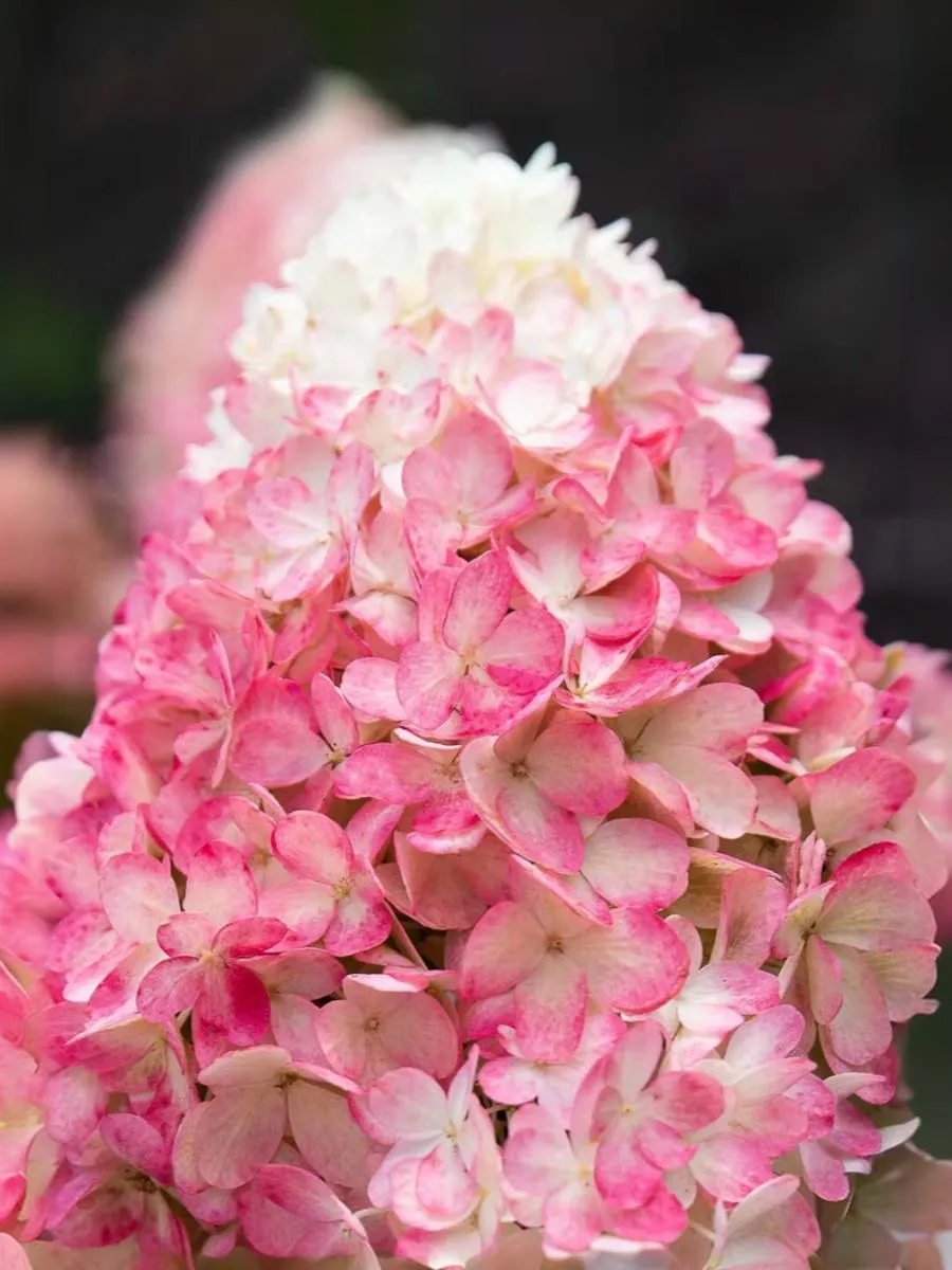 Этот сорт образует соцветия пышные, длиной 20-25 см, которые состоят из стерильных цветков. Зацветает белыми цветками, которые в течение сезона становится розовыми. Побеги прочные, жесткие, способны самостоятельно удерживать крупные метелки, куст не разваливается. Цветет с июля и до октября. Вынослива и неприхотлива.