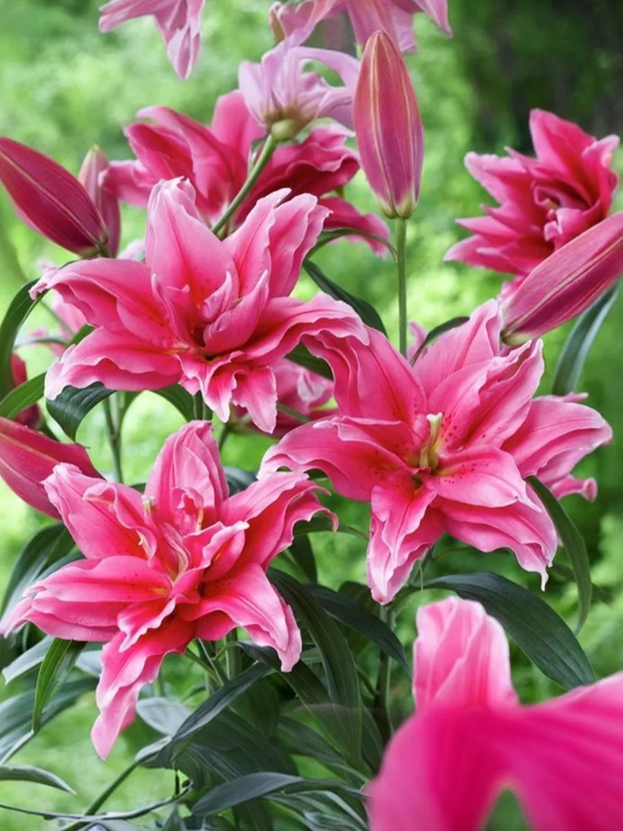 Цветы махровые, темно-розовые с многочисленными лепестками и чашелистиками, особенно эффектно выглядят при ярком свете. В высоту до 110 см. Диаметр цветка от 18 до 21 см. Период цветения июль-август. Имеют приятный аромат, который усиливается к вечеру.