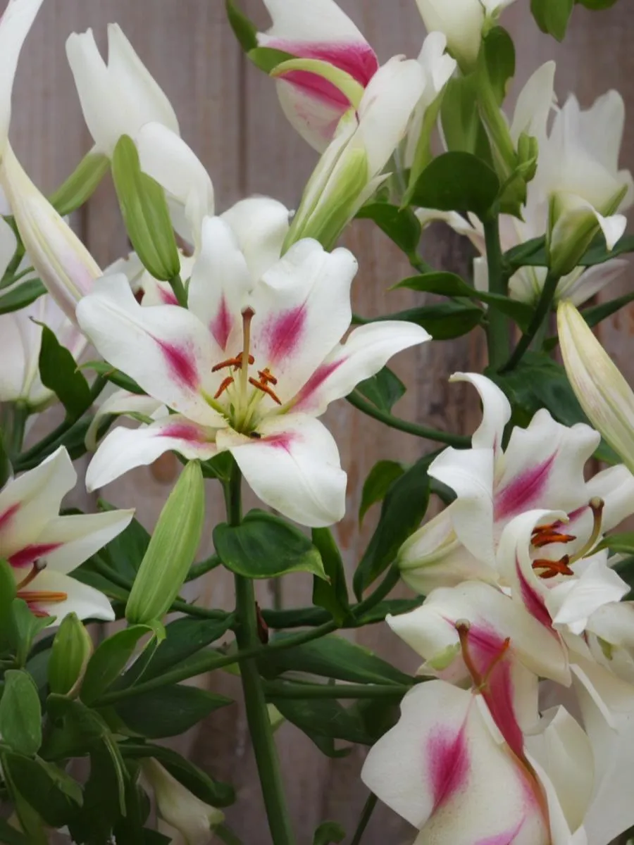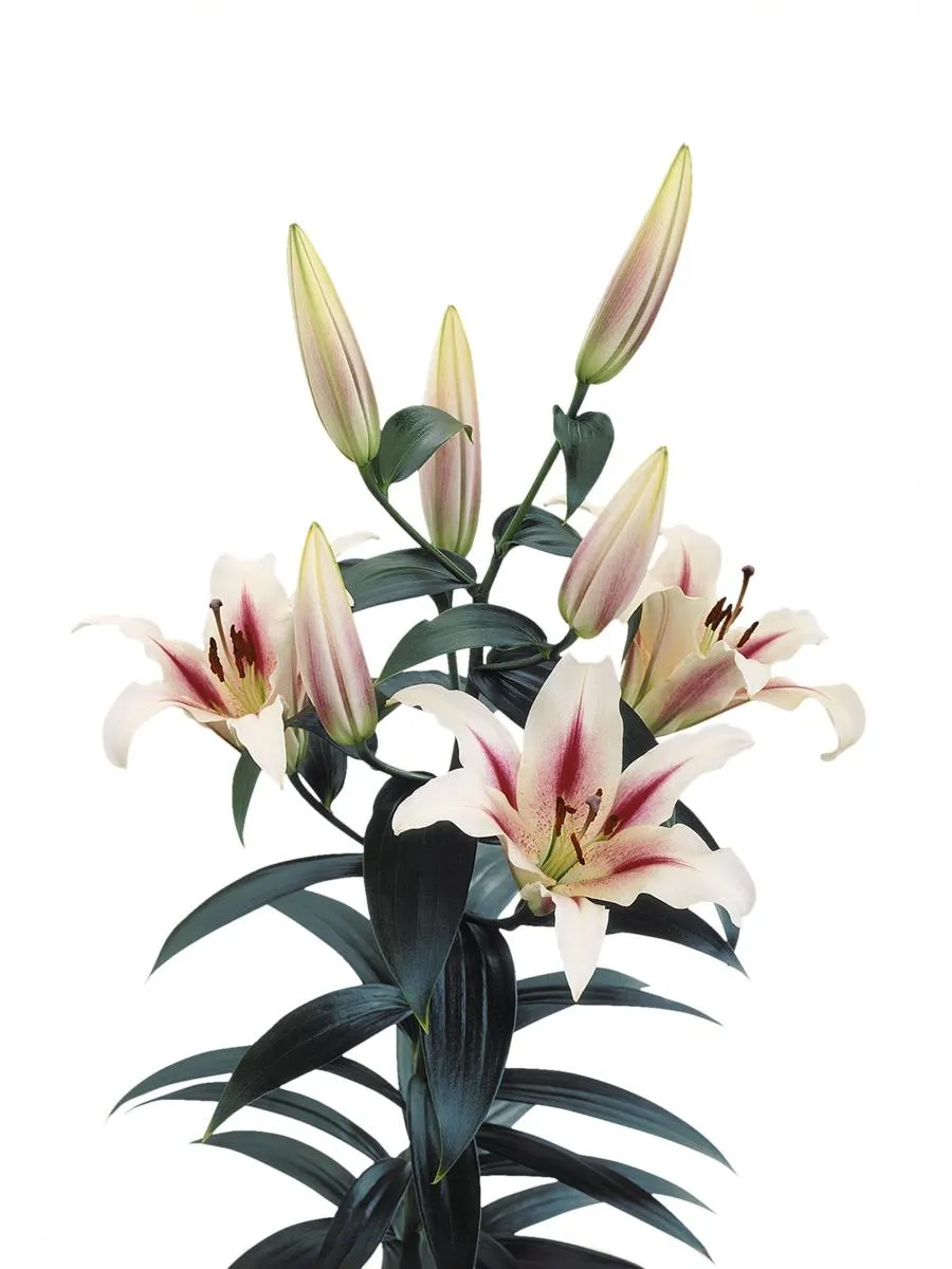 У этого сорта изысканная форма цветка. Кремовая лилия с малиновыми стреловидными мазками от центра до середины лепестков. Великолепная срезка, широкие возможности для ландшафтного дизайна. Высота растения – 130 см, диаметр цветка – 18 см, сроки цветения – июль-август