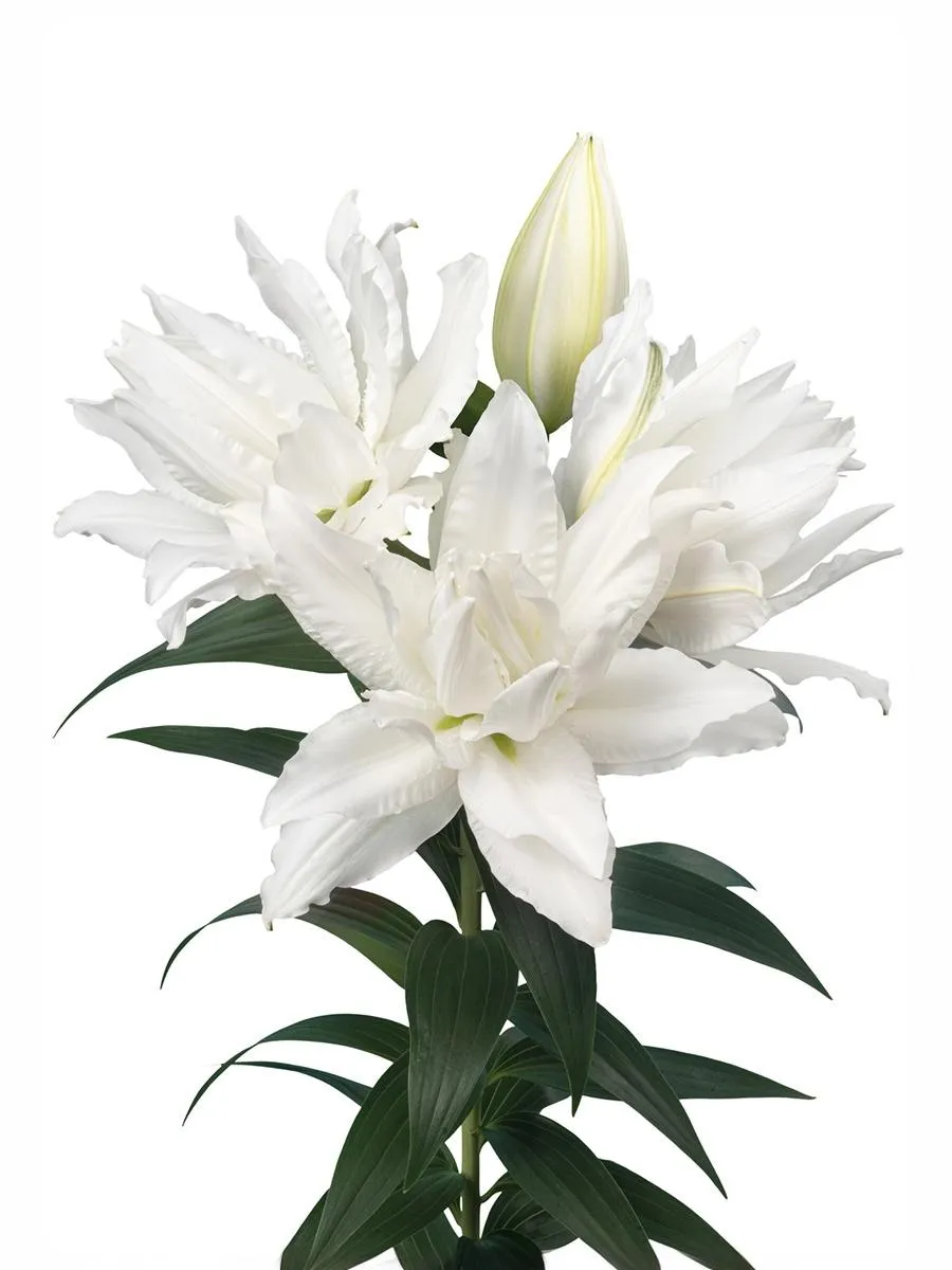 Изысканная восточная лилия, украшенная элегантными направленными вверх цветами чистого, нетронутого белого оттенка. Этот сорт без пыльцы и может похвастаться относительно коротким временем выращивания — 15–16 недель. Идеально подходит для срезанных цветочных композиций, добавляя нотку изысканности и изящества любому цветочному творению. Высота 100-120 см.