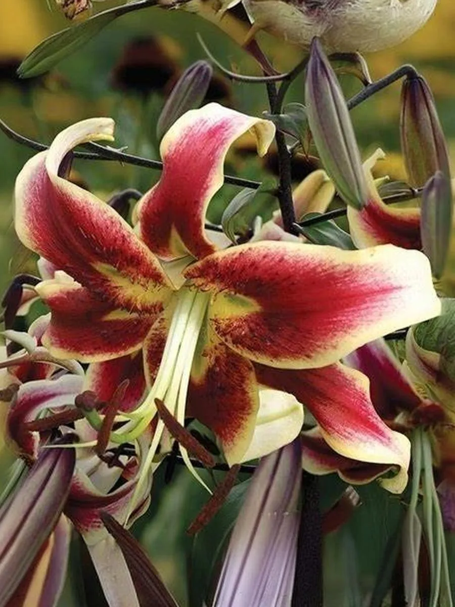 Относится к типу чалмовидных ОТ гибридов. Цветки диаметром 17 см, темно-красного цвета, переходящего по краям в желтый, а на кончиках в кремово-белый. Цветки направлены в сторону. Зацветает в июле-августе. Имеет сильный аромат. Высота растения 120-140 см. Расположение для посадки - открытые и солнечные места. Лилия Шехерезада неприхотливая, устойчивая к грибным заболеваниям, зимостойкая. Прекрасно разрастается, образуя крупные луковицы.