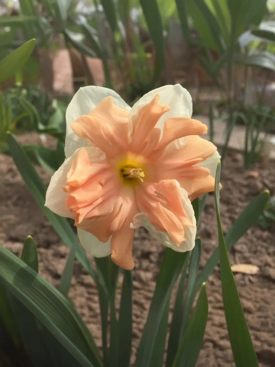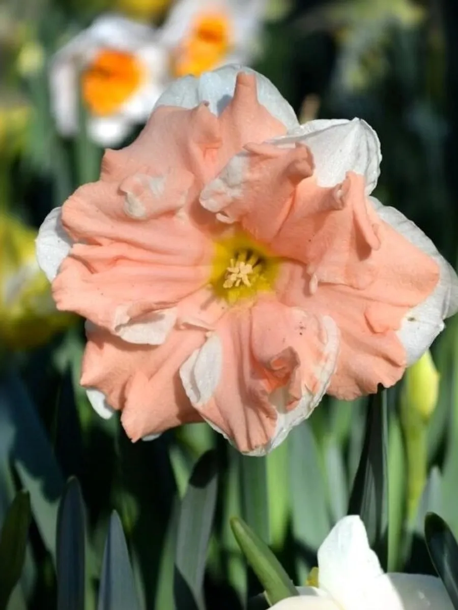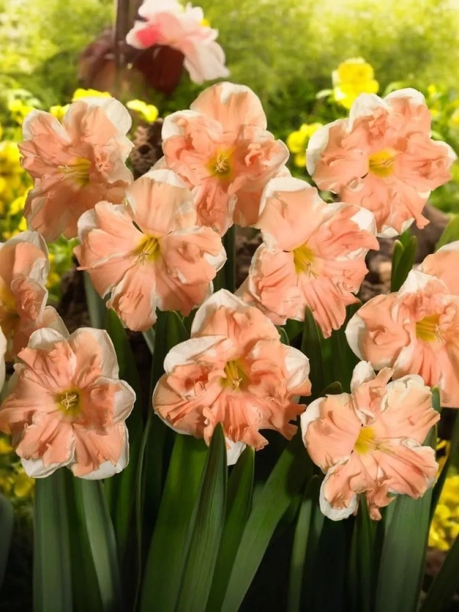 Цветки Эприкот Вирл 10 сантиметров в диаметре располагаются на прочных стеблях 40 см в высоту. Уже в начале мая бутоны начинают превращаться в нечто невообразимо прекрасное! Большие волнистые лепестки складываются в пышный цветок необычного нежно-лососевого оттенка.