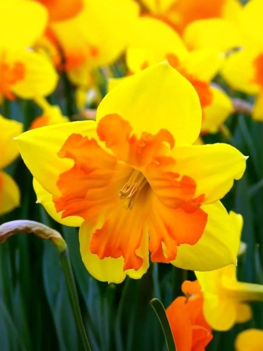 Цветок яркий, привлекающий внимание, жизнерадостный и заряжающий своим оптимизмом. Темно-желтые цветки венчают крепкие цветоносы и с радостью подставляют скудным солнечным лучам свои крупные оранжевые коронки. Период цветения апрель – май. Высота растения: 40-50 см.