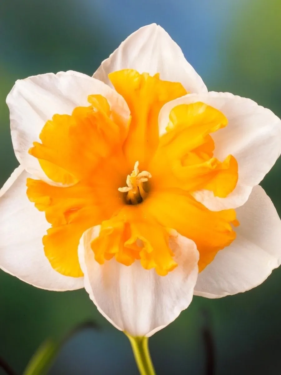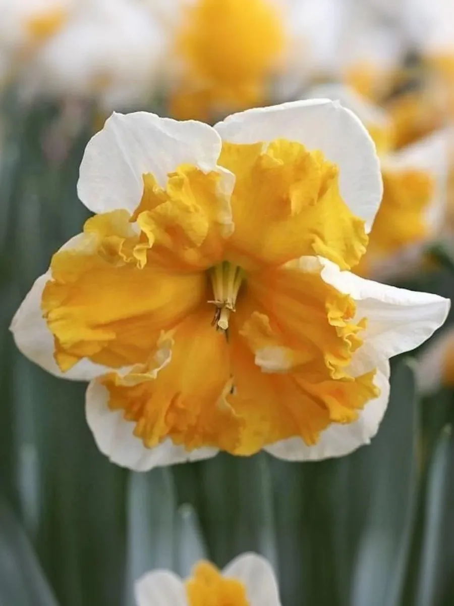 Сорт гофрированный. Цветок достигает высоты 30 см. Имеет белый околоцветник, на котором находится ярко-жёлтая махровая коронка. Диаметр цветка 5-7 см. Быстрорастущее красивое растение. Очень хорошо подходит для посадки на садовых почвах