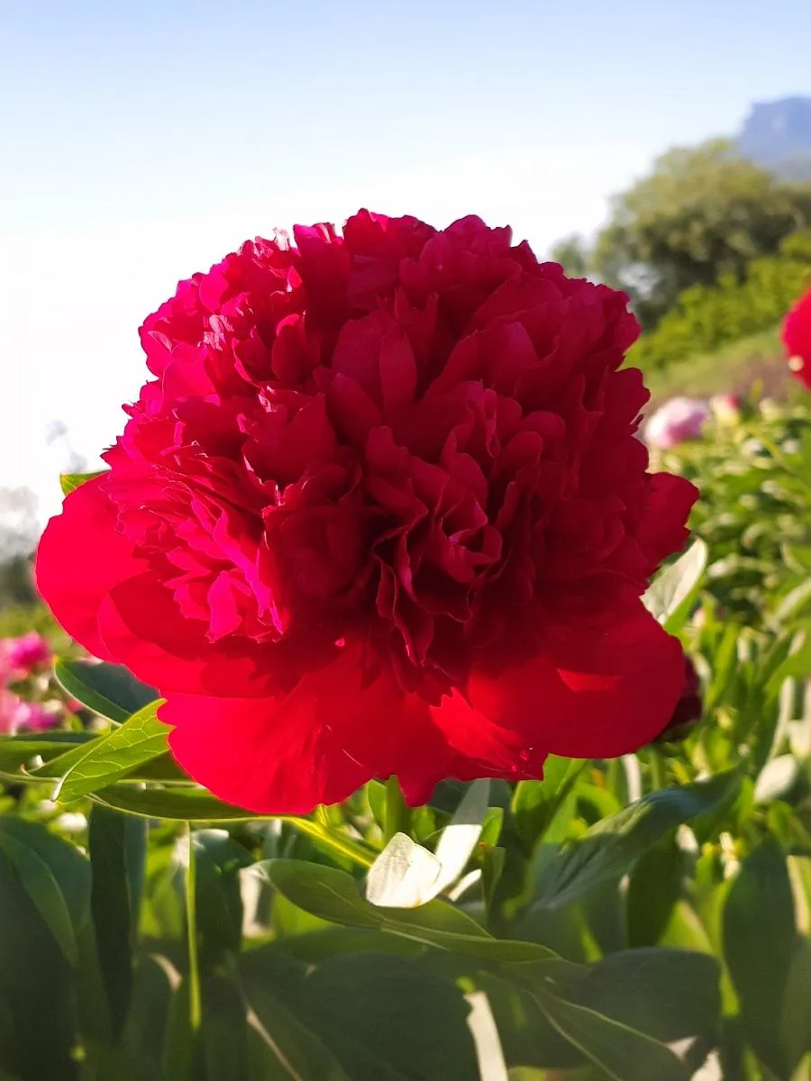 Пион Диана Паркс является гибридным травянистым пионом. Густомахровый цветок диаметром 12 см, плотный, очень оригинальной окраски, ярко-красный с лёгким оранжевым отливом. Высота 60-70 см, стебли прочные, листья светло-зелёные, блестящие, средне-раннего срока цветения. Морозостойкость до -40 градусов.