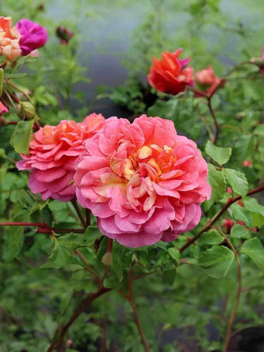У сорта Кристофер Марлоу лепестки интенсивного оранжево-розового цвета изнутри и золотисто-желтые с розовым оттенком снаружи. Это создает красивый двуцветный эффект. Цветки появляются практически непрерывно все лето. Формирует красивый маленький куст, густой и раскидистый, побеги растут во всех направлениях. Листва зеленая, блестящая, мелкая, очень устойчива к заболеваниям. Высота до 100 см.