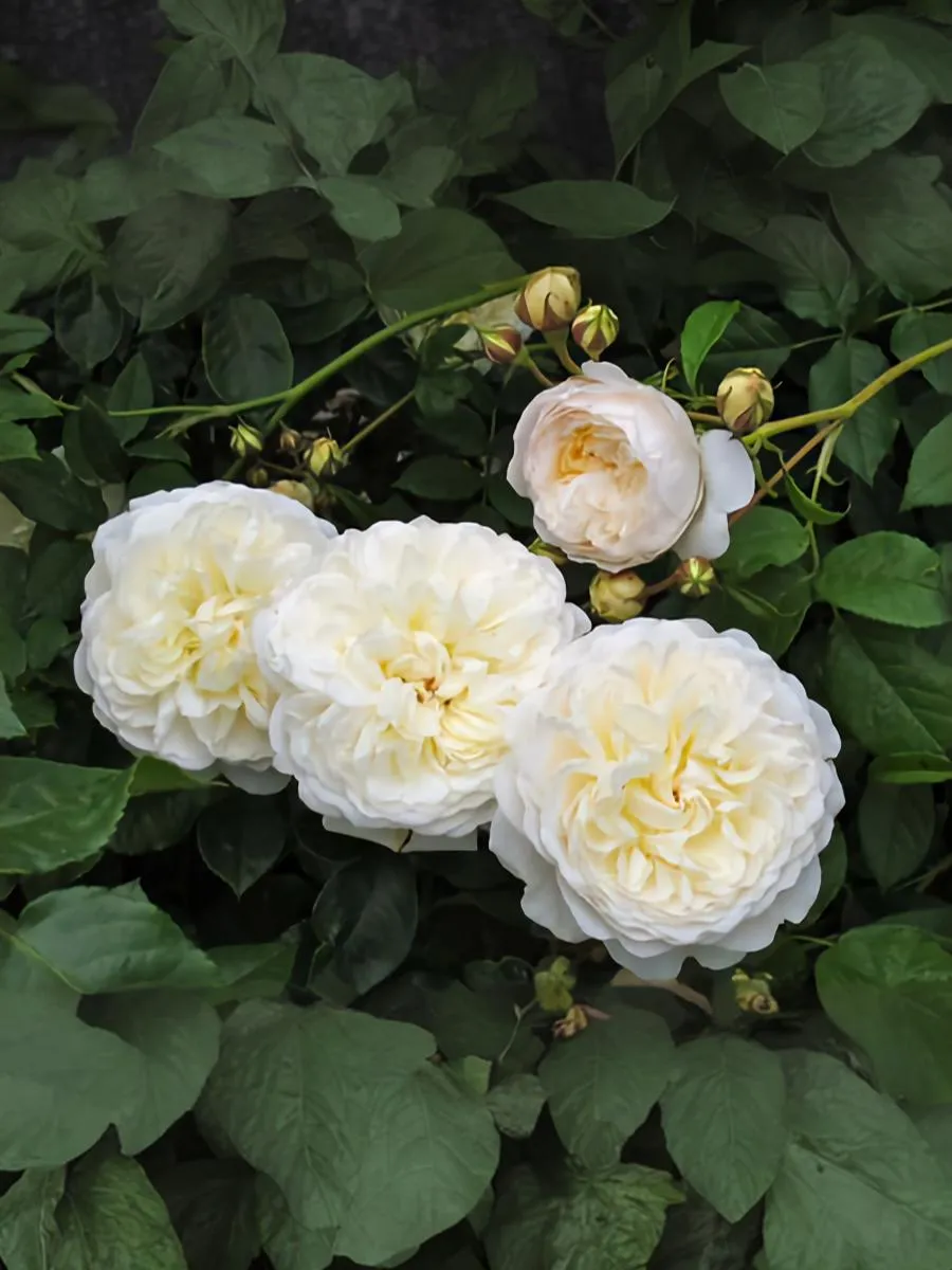 У розы Транквилити цветы имеют изящную округлую форму с аккуратно уложенными лепестками, образующими идеальную розетку. Бутоны слегка желтоватые, но по мере роспуска цветка лепестки становятся чисто-белыми. Чувствуется легкий яблочный аромат. Куст крепкий с вертикальным характером роста, наверху ветви немного изгибаются. Растение мощное и здоровое. Листва светло-зеленая. Растение практически лишено шипов. Высота до 120 см.