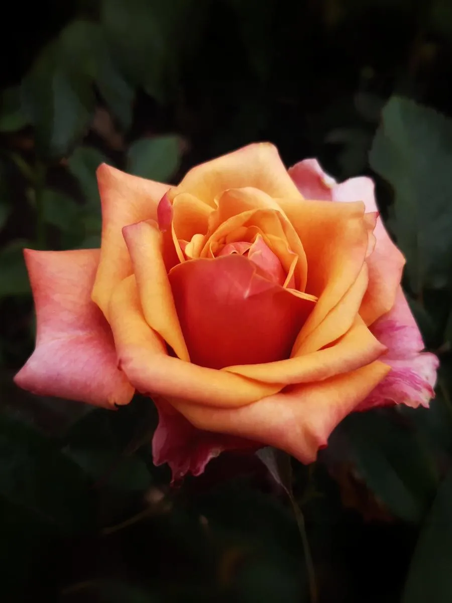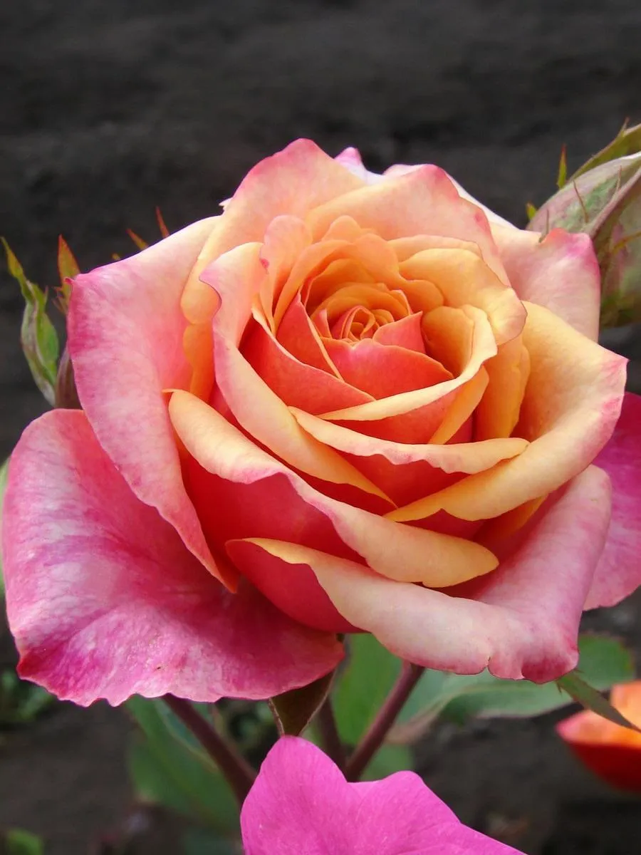 Чайно-гибридная роза необычного цвета. Цветы имеют форму бокала, крупные. Внутренняя сторона лепестков имеет оранжевый цвет, внешняя сторона винно-красная. Имеет легкий аромат с фруктовыми нотками. Куст сильнорослый, прямостоячий, компактный. Листья темно-зеленого цвета, блестящие. Цветёт с конца июня до первых заморозков. Светолюбива, предпочитает солнечные места, достаточно засухоустойчива. Зимостойкость - высокая.