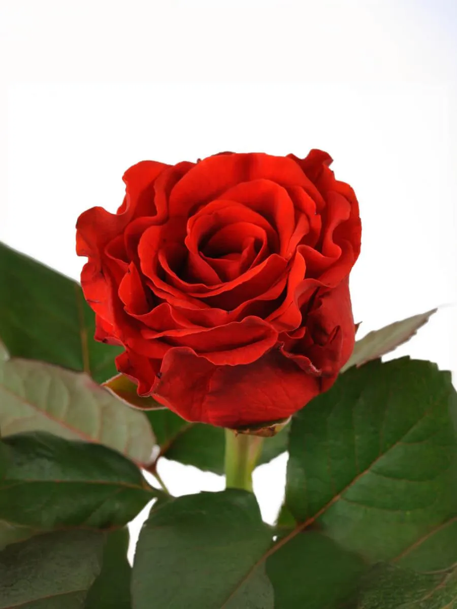 Данный сорт розы отличается оригинальной формой лепестка. Резные и крупные они могут быть и ярко-красного, и кровавого, и темно-оранжевого цвета. Расположены по одному на очень мощных цветоносах цветок держится 3-4 недели, лепестки гофрированы. Листья тёмно-зелёные с красноватым оттенком. Куст имеет прямые ровные побеги, что делает сорт идеальным для срезки. Листья средние, резные, темно зеленого цвета.