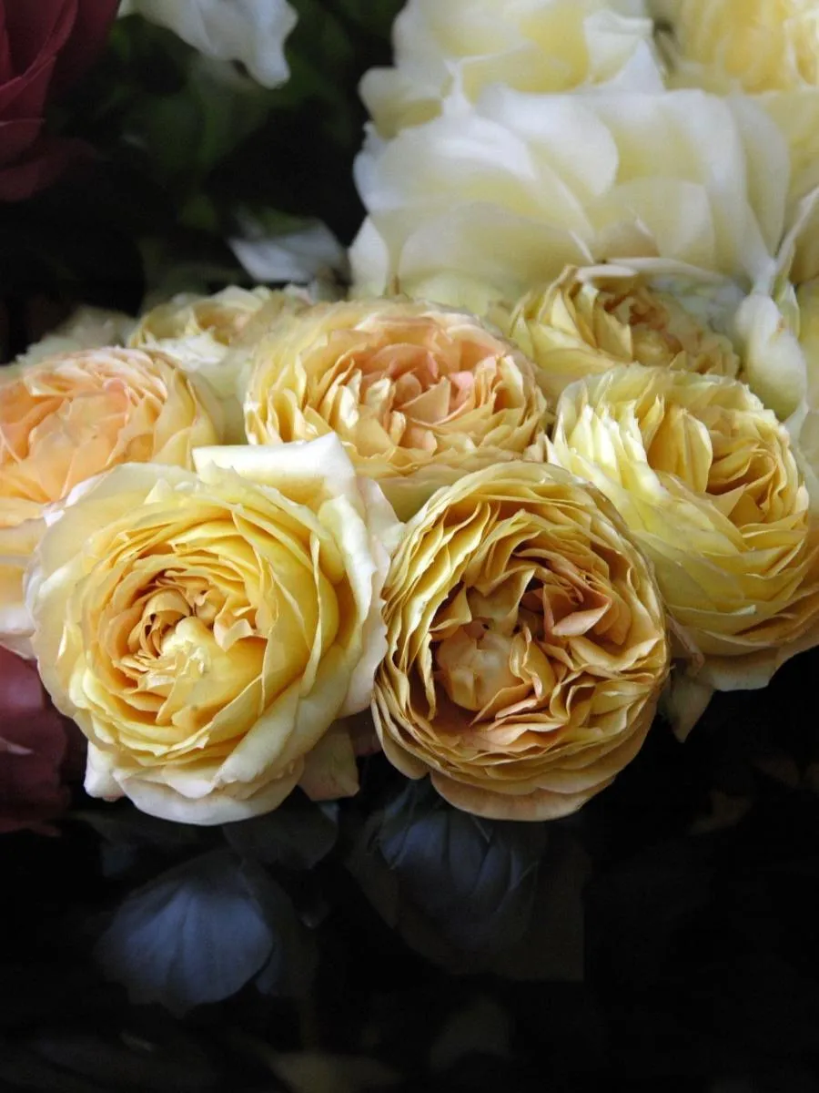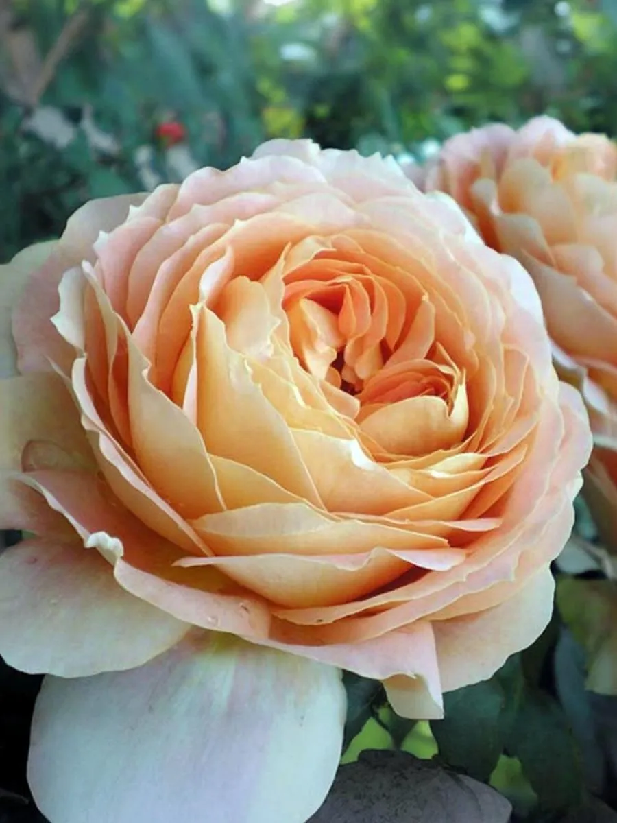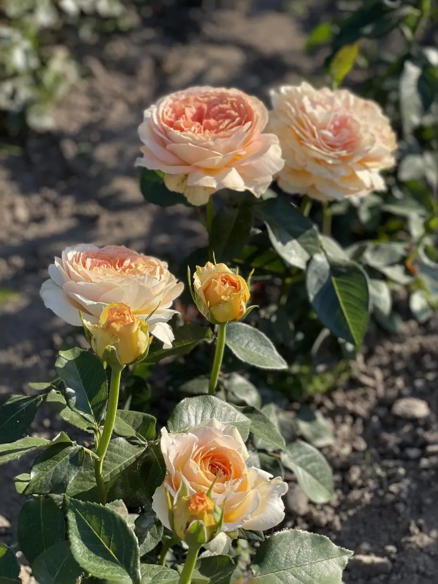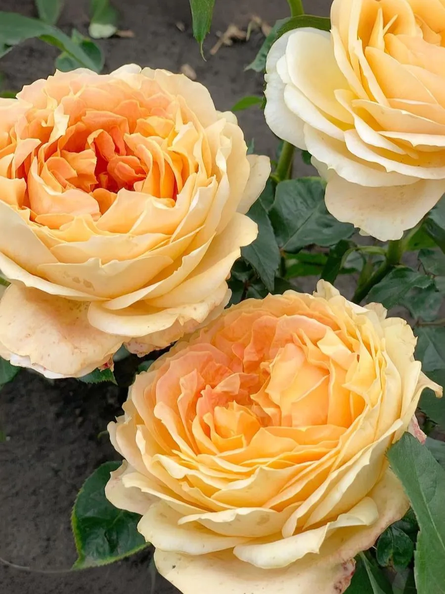 Этот сорт роз имеет медово-желтый, абрикосовый, с розовым румянцем к центру цвет. Слабый аромат. Бутоны обладают густомахровостью и состоят из 100 до 120 лепестков. Цветки большие, очень плотные, лепестки аккуратно уложены. Цветет в течение всего сезона. Хорош для срезки, цветы стоят в вазе до 12 дней.