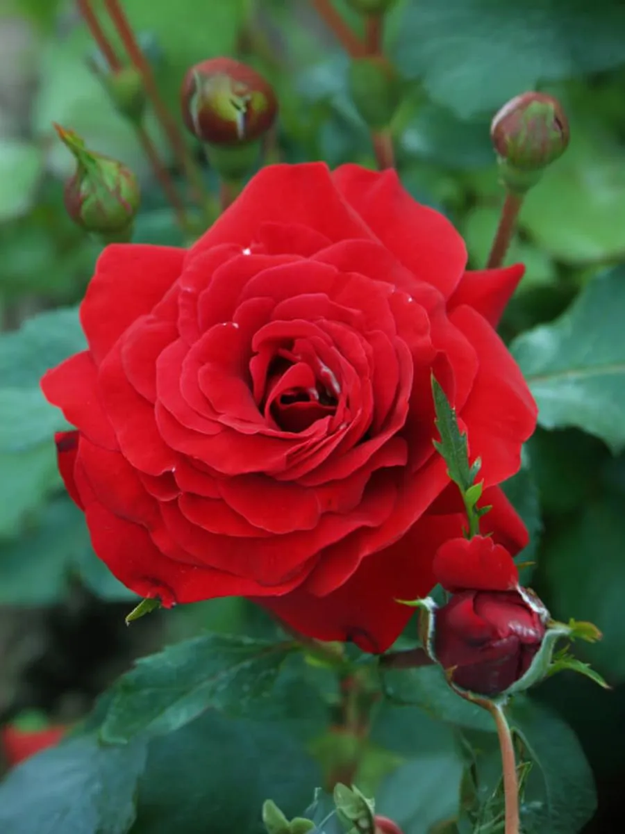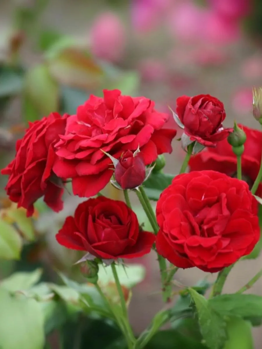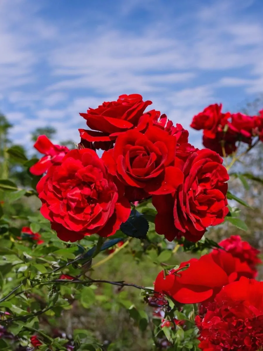 Цветки яркие, темно-красные, не выгорают. Появляются обычно в кистях по 3-10 шт, иногда в крупных букетах до 30 шт. Устойчивы к дождю, цветение практически непрерывное до первых морозов. Листва темная, блестящая, куст крупный, ветвистый. Ценится за свою зимостойкость и устойчивость к болезням. Великолепный выбор для массовой посадки в саду.