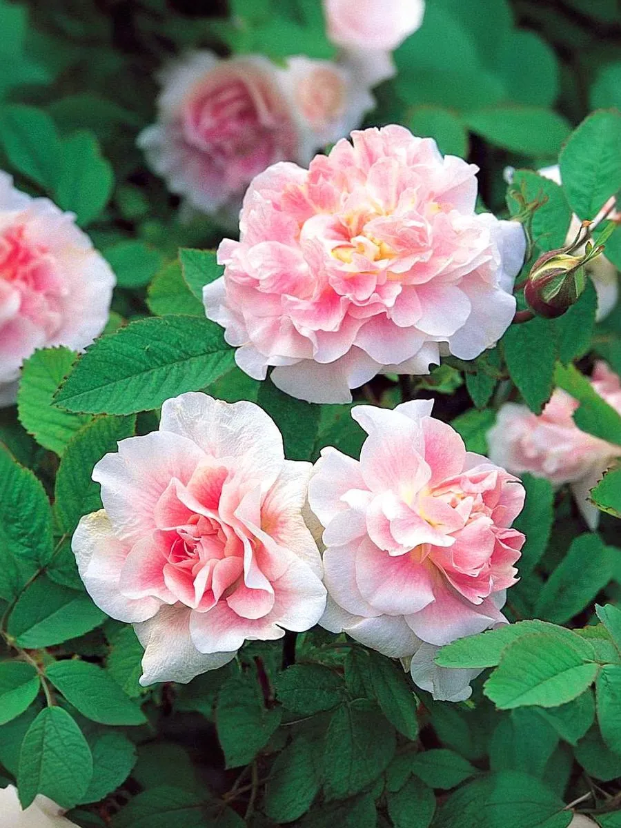 Цветет непрерывно до первых морозов нежным молочно-розовым цветом. Одна из лучших роз серии Explorer. Практически без шипов, с оборотной стороны лепестки розы почти белые, они загибаются внутрь, формируя в центре пуговку. Цветки обычно появляются в кистях по 3-5 шт, на довольно длинных изящных стеблях и хороши для срезки. Листья матовые серо-зеленые, здоровые. Куст розы Мартин Фробишер прямостоячий, сильнорослый, цветет обильно в первую волну, а затем практически непрерывно до первых морозов. Также прекрасно себя чувствует в жарком климате. Сорт устойчив к болезням, особенно к мучнистой росе. Выдерживает без укрытия мороз до 35 градусов. Высота растения до 180 см; Диаметр цветка 5-6 см.