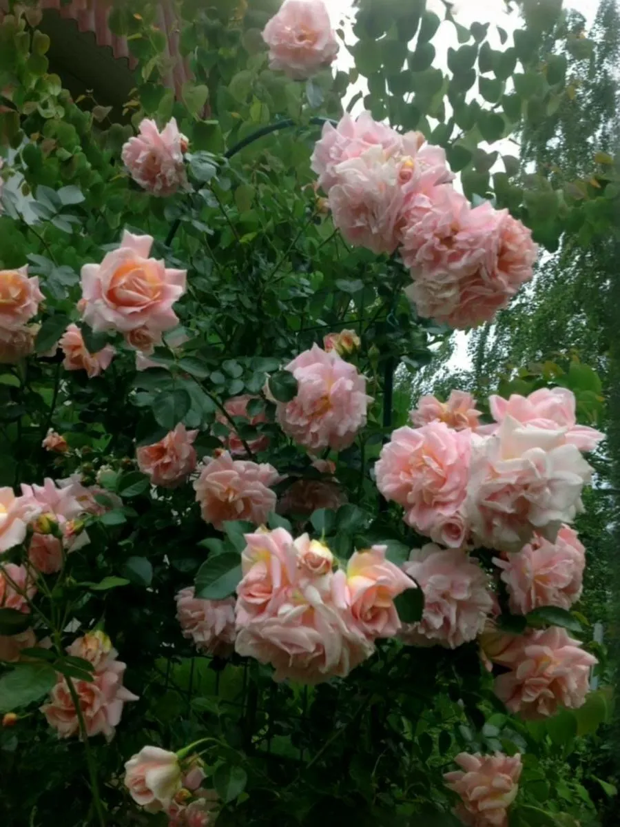 Длинные элегантные бутоны раскрываются в цветки с волнистыми лепестками, средних размеров, в больших изящных кистях. Они розового или кораллового цвета. Цветки очень ароматные, появляются все лето на сильном кусте с темно-зеленой блестящей листвой. Позднее цветок раскрывается, и показывает серединку, а цвет меняется на кремово-сливочный. Цветки появляются в небольших кистях.