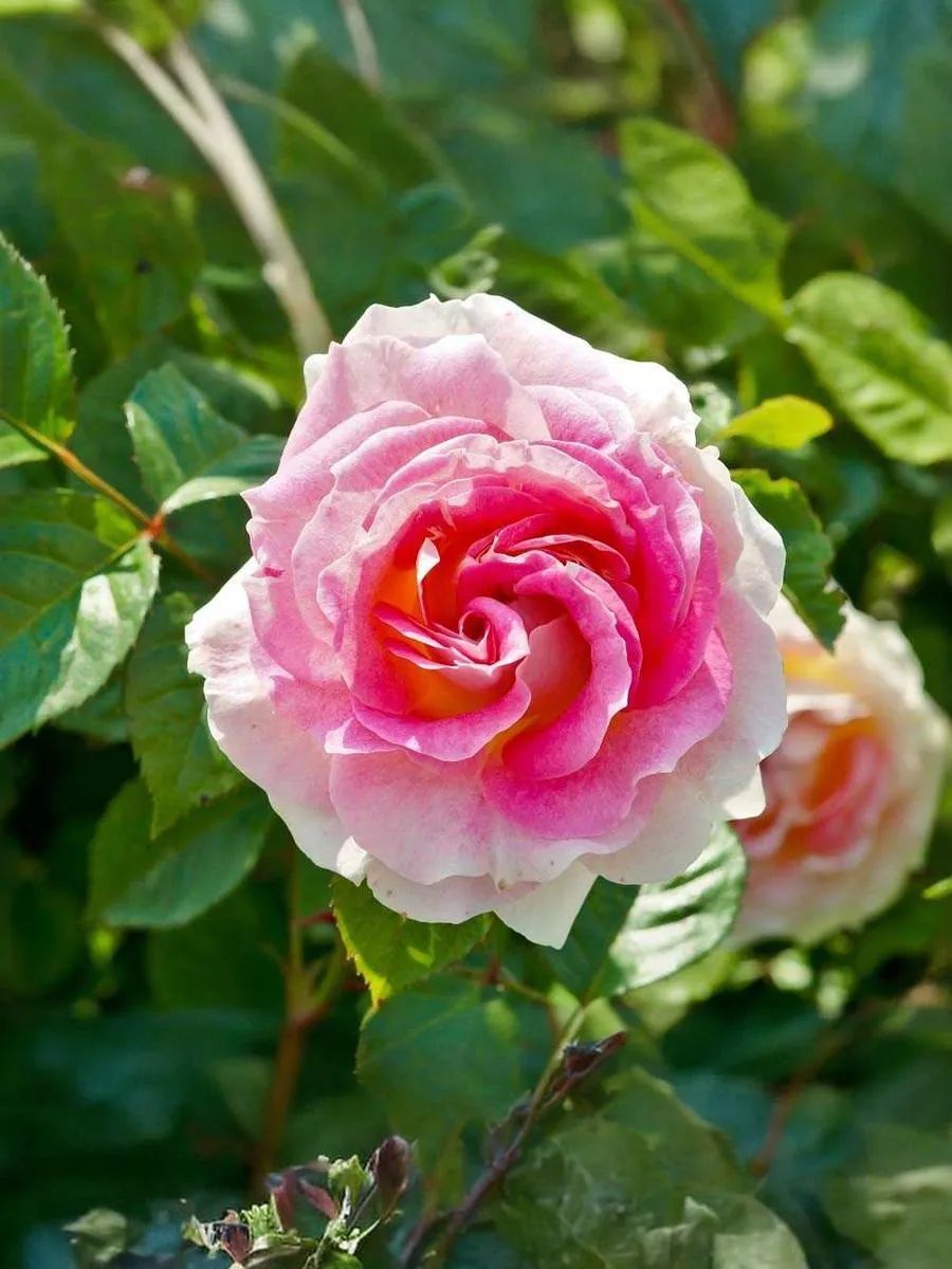 Широкие, очень сильно волнистые лепестки свернуты в центре цветка, так что темно-розовая внешняя сторона лепестков красиво контрастирует с нежно-абрикосовым реверсом. Цветки быстро раскрываются, они густомахровые и округлой формы. Лучше всего сорт показывает себя в теплых, сухих условиях. Листва устойчива к заболеваниям.