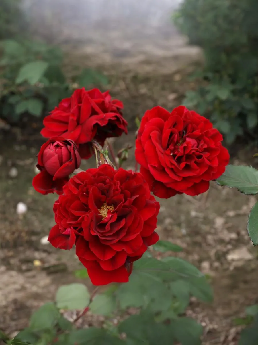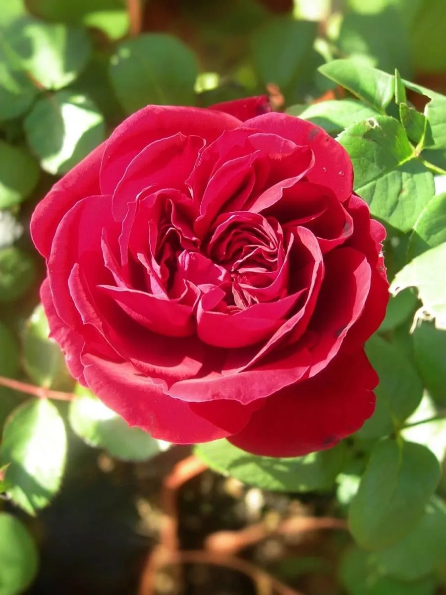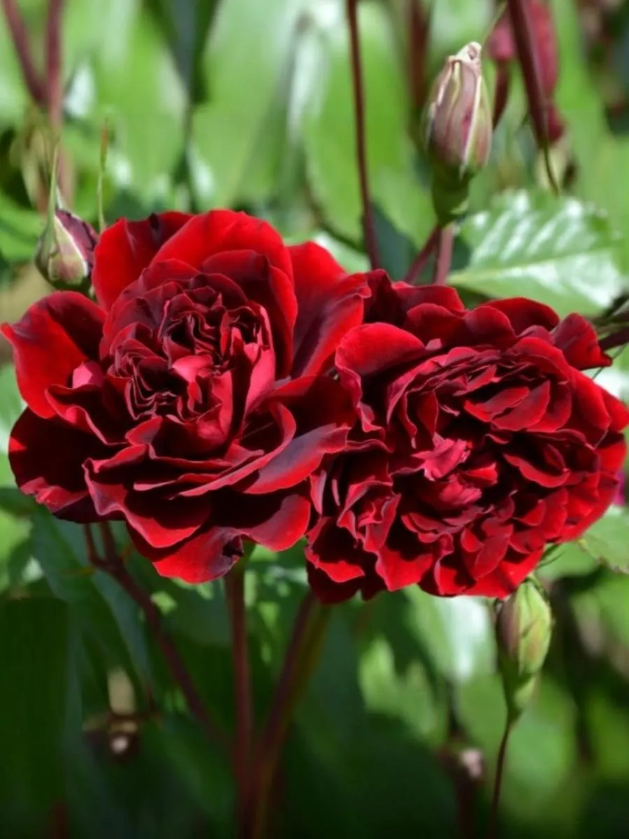 Цветки Изабель Ренессанс очень насыщенного, темного красного цвета. Цветки густомахровые, в форме розетки. Появляются по одному или в плотных кистях по 3-4 шт. У Изабель Ренессанс сильный прямостоячий куст, с крупной, темной листвой. Не болеет.