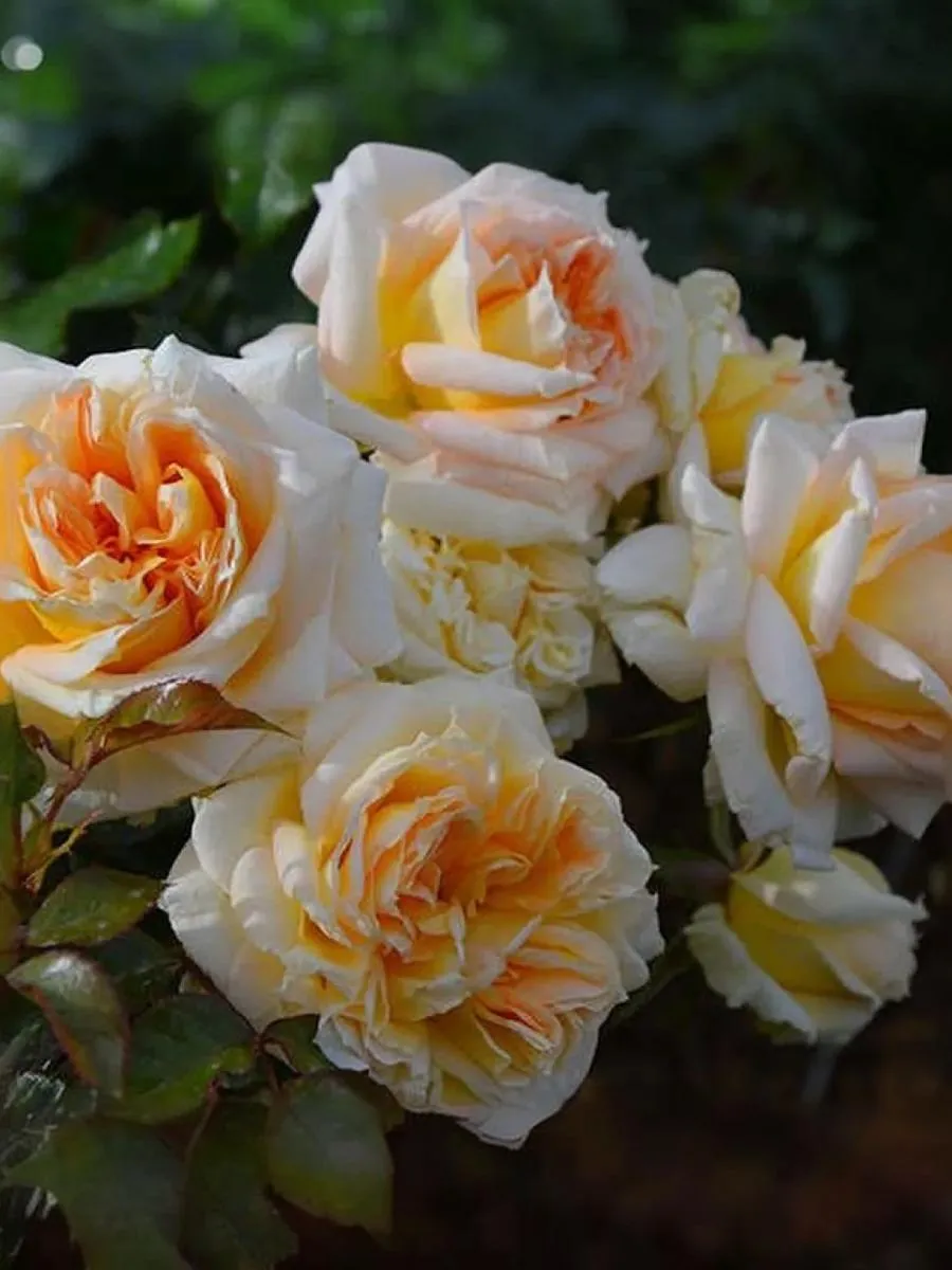Сорт розы Ла Калессон имеет густомахровые цветы до 100 лепестков в соцветиях по 5-7 шт. Цветки оранжево-жёлтого цвета с кремовыми и сливочными оттенками. Аромат нежный. Куст энергично нарастает, глянцевая, яркозелёная листва. Превосходная устойчивость к болезням. Высота: 100-150 см