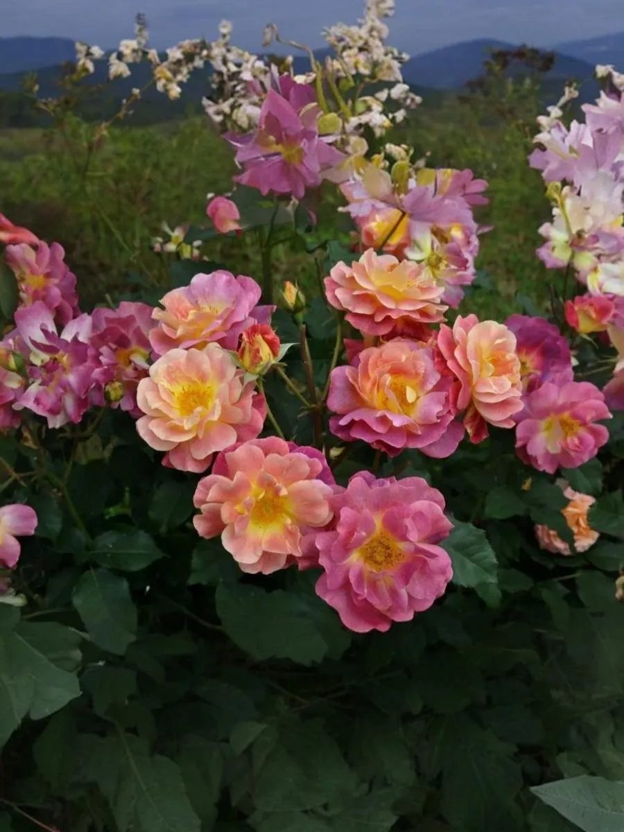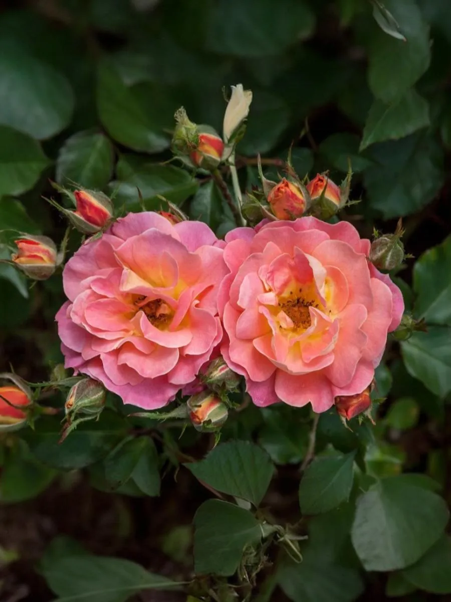 Цветки сорта Приёр де Сан-Косм клубнично-розовые с желтым центром, изнанка лепестков также желтая. Цветки махровые, 17-25 лепестков, чашевидные. Куст высокий, может использоваться как невысокая плетистая роза. Устойчивость к грибным заболеваниям: высокоустойчива.