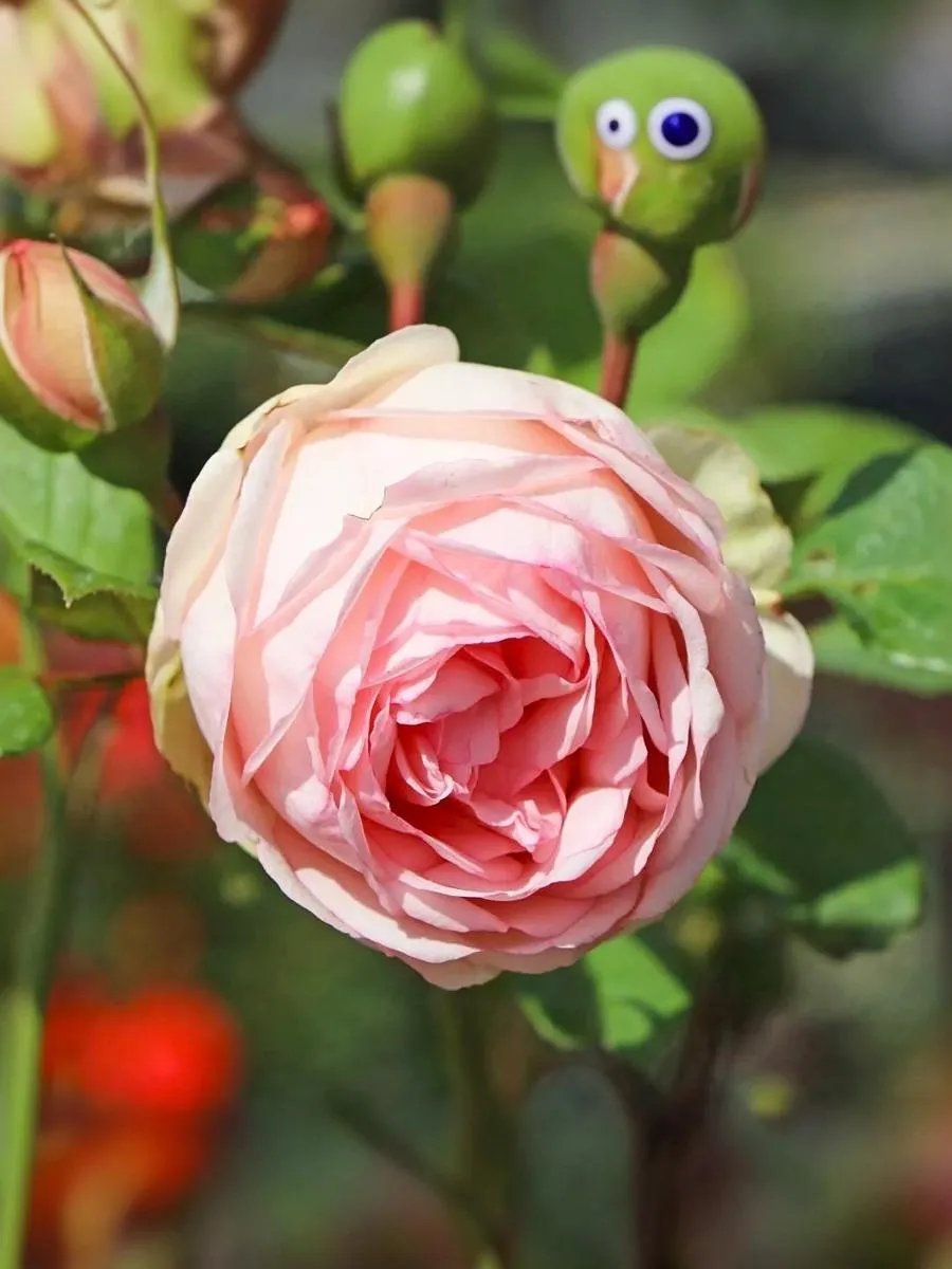 Аккуратный шаровидный бутон плавно темно-розового цвета перевоплощается в невероятно красивый цветок диаметром 6-8 см. Форма цветов вызывает настоящий восторг, поскольку она внешне напоминает пион. Сначала цветок имеет форму шара, а потом приобретает более привычный облик – чашевидный. Густомахровая роза с тугим центром состоит из 80-85 одинаковых лепестков, плотно прижатых друг к другу. Окрас у цветка нежно-розовая. Иногда окрас у таких роз имеет переход от нежно-розового в центре до кремовато-розового по краям. У полностью распустившегося цветка крайние лепестки аккуратно закручиваются наружу, что придает розе элегантность. Цветущие кустарники очень эффектны, источая едва уловимый аромат с нотками свежей мелиссы.
