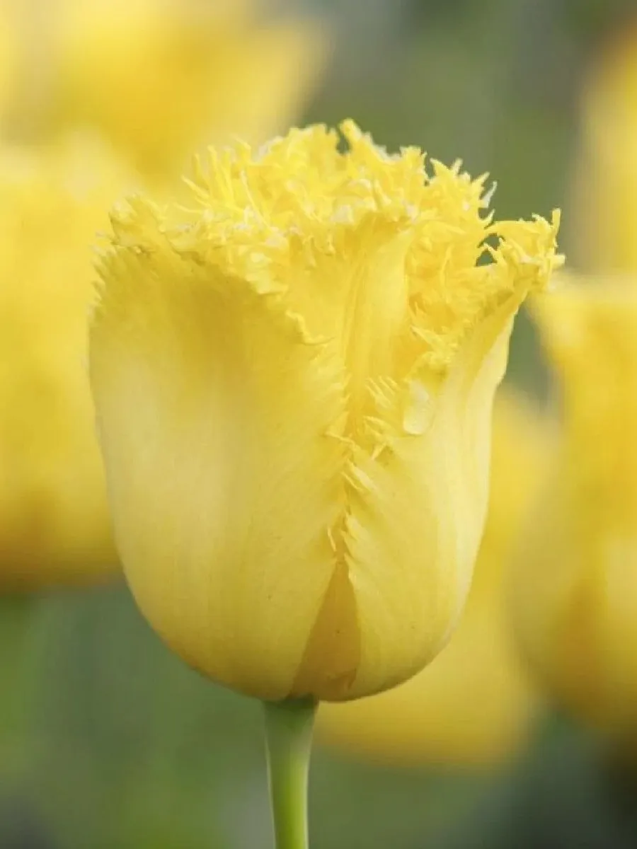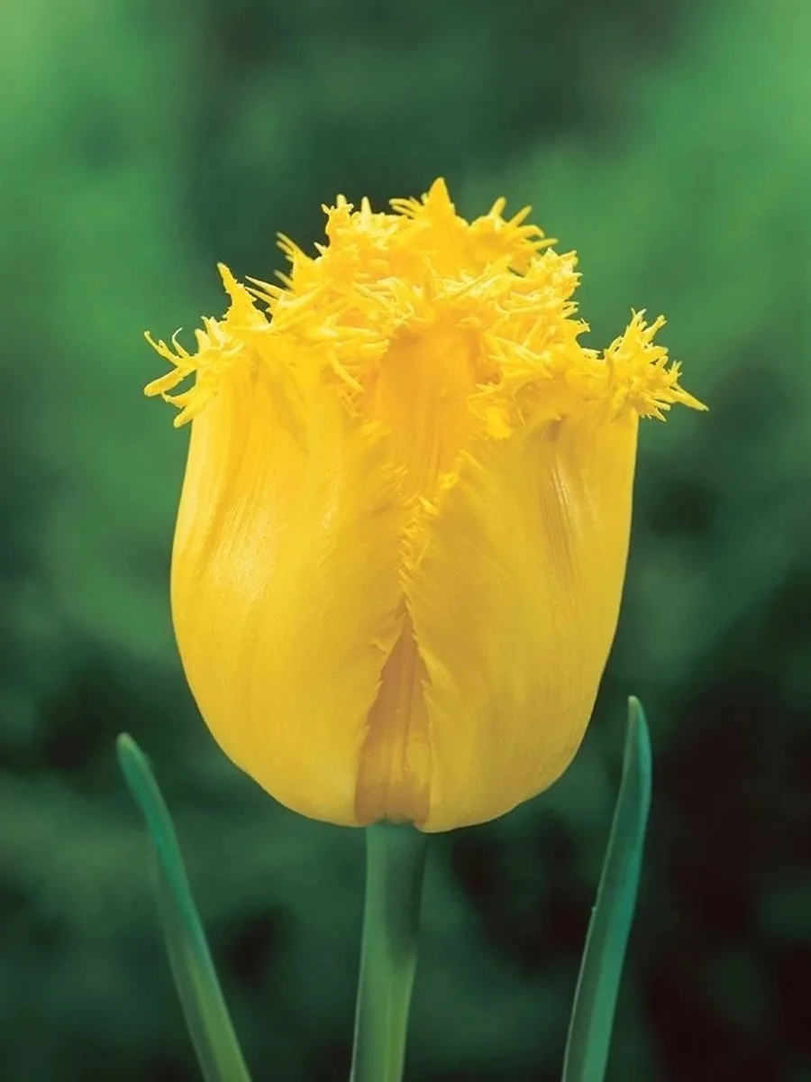 Высота растения – до 65 см. Бокал имеет чашевидную форму. Окраска лепестков – желтая. Края каждого лепестка покрыты крупной бахромой. Средние размеры бокалов: высота – 8 см, диаметр – около 6 см.