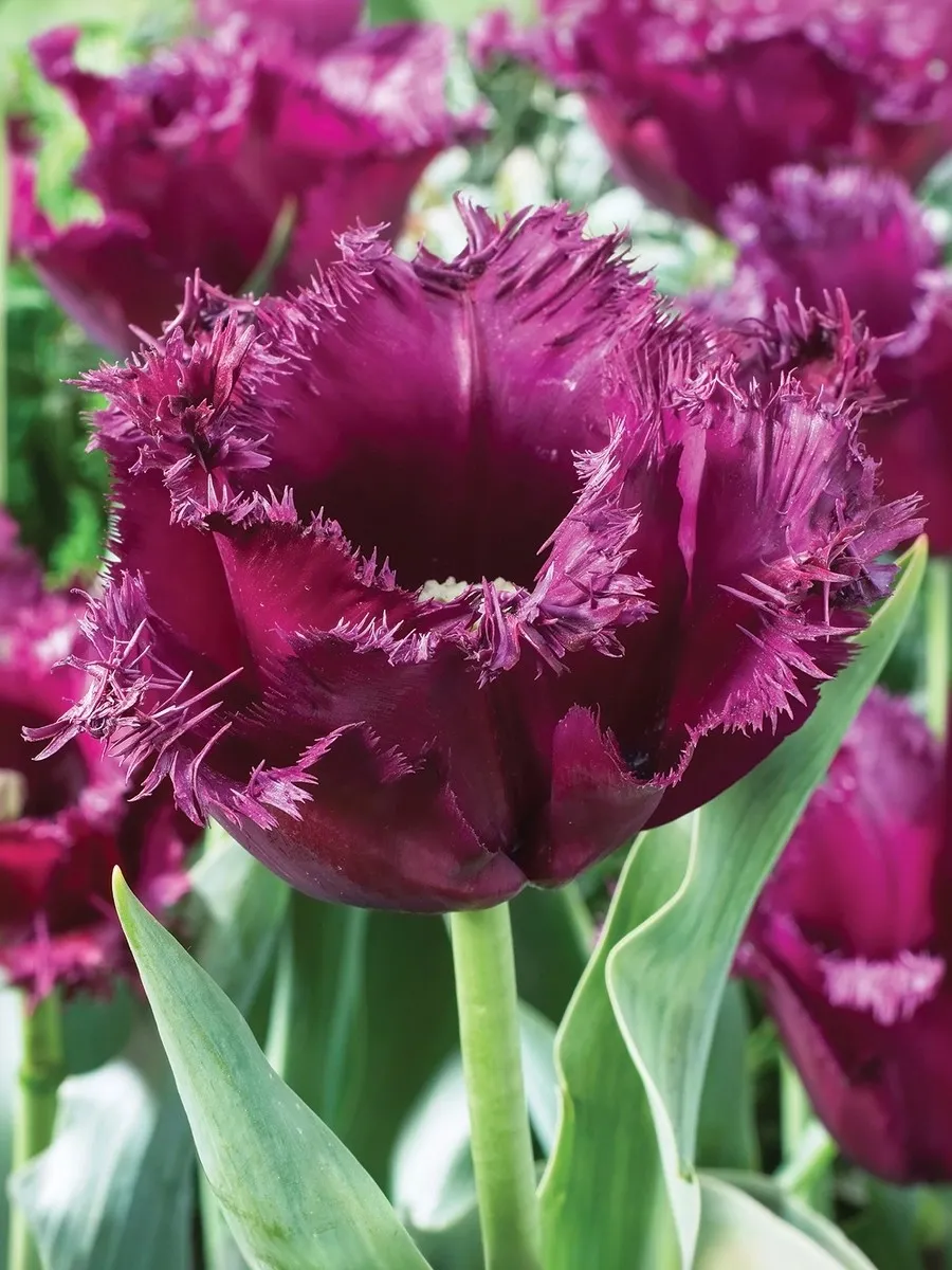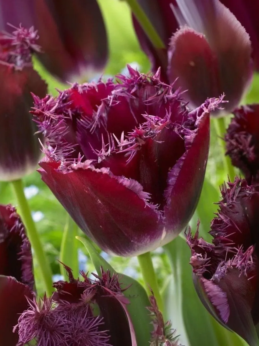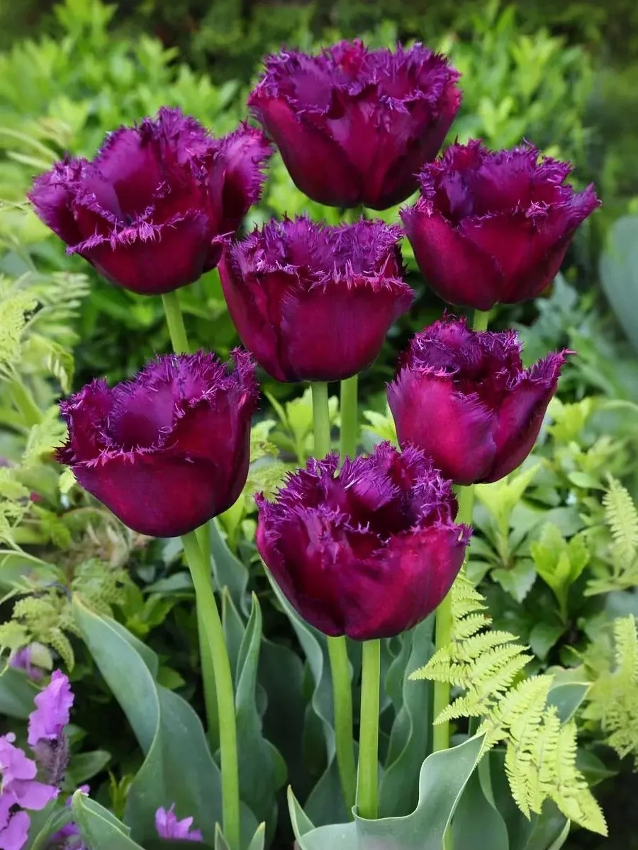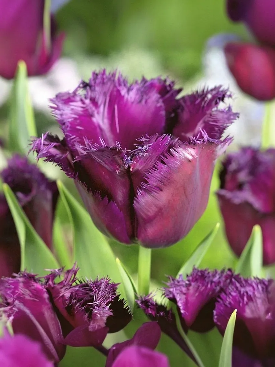 Тюльпан бахромчатый Горилла — многолетнее луковичное растение высотой 40–45 см с необычными завораживающими цветками диаметром 8–10 см. Лепестки малиново-пурпурные, по краю игольчато-бахромчатые, образуют шикарный восхитительный бокал. Тюльпан Горилла широко используют как для озеленения и украшения клумб, так и для букетов.