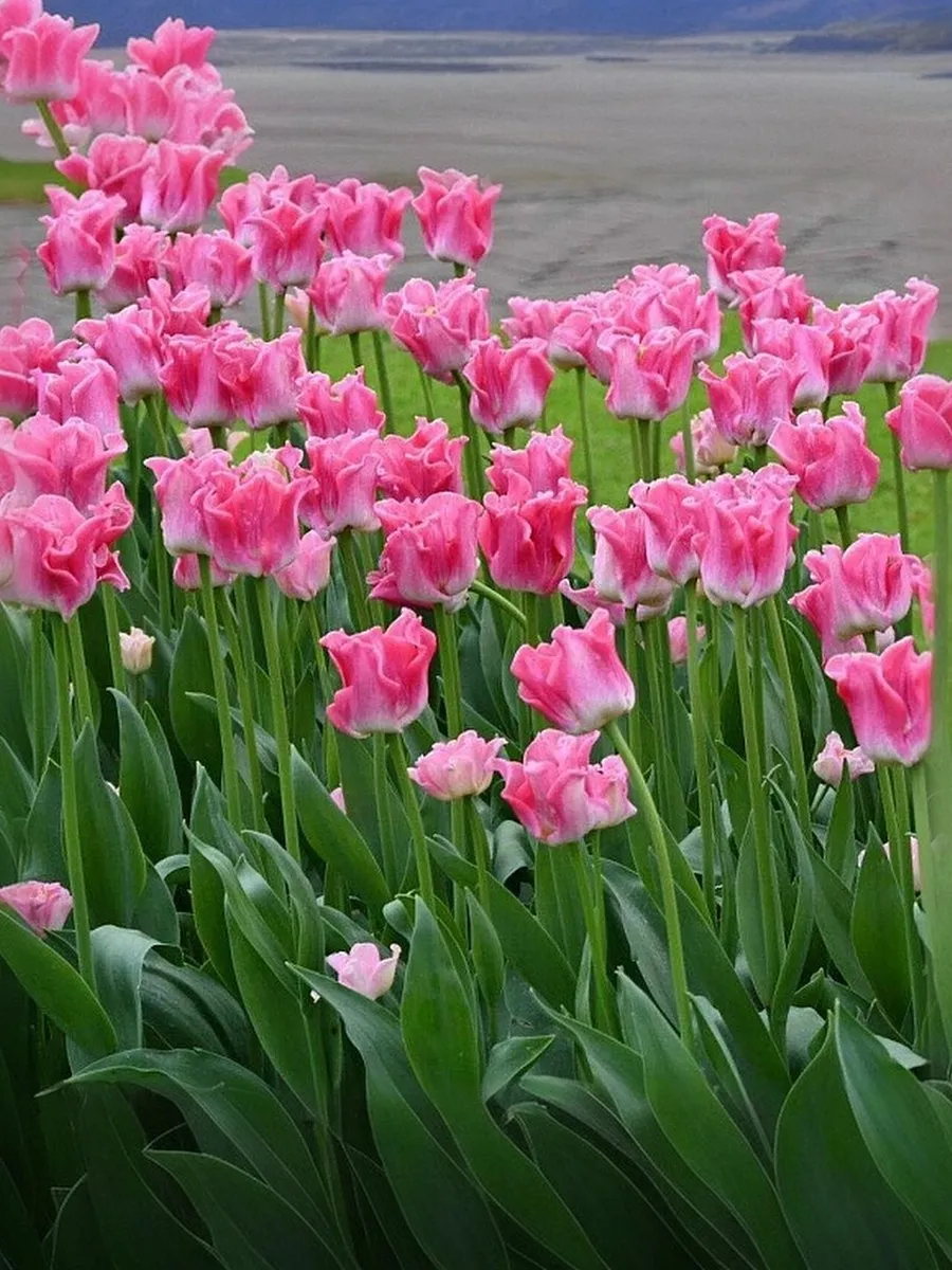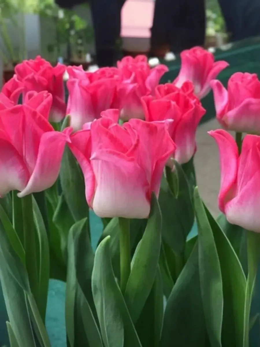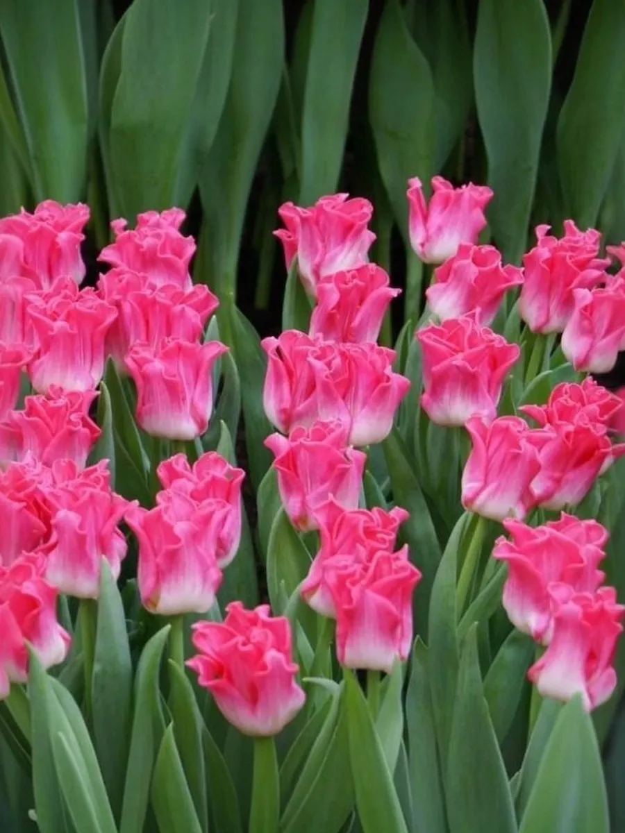 Тюльпан Краун оф Династи (класс Триумф) — сорт высотой 40 см. Цветок у основания белый, выше насыщенно-розовый, с волнистым краем. Бокал 6-8 см. Тюльпан широко используют как для озеленения и украшения клумб, так и для букетов.