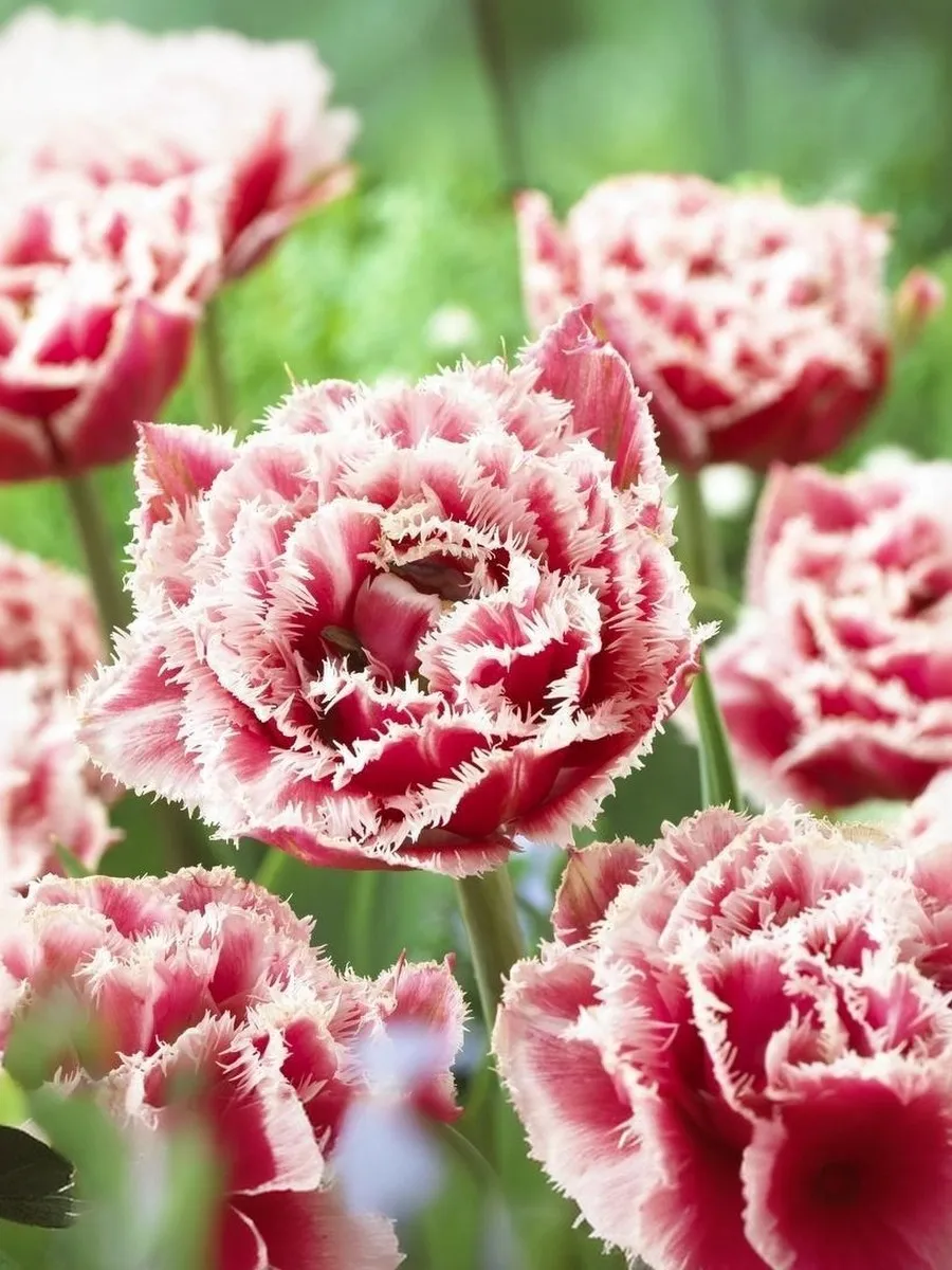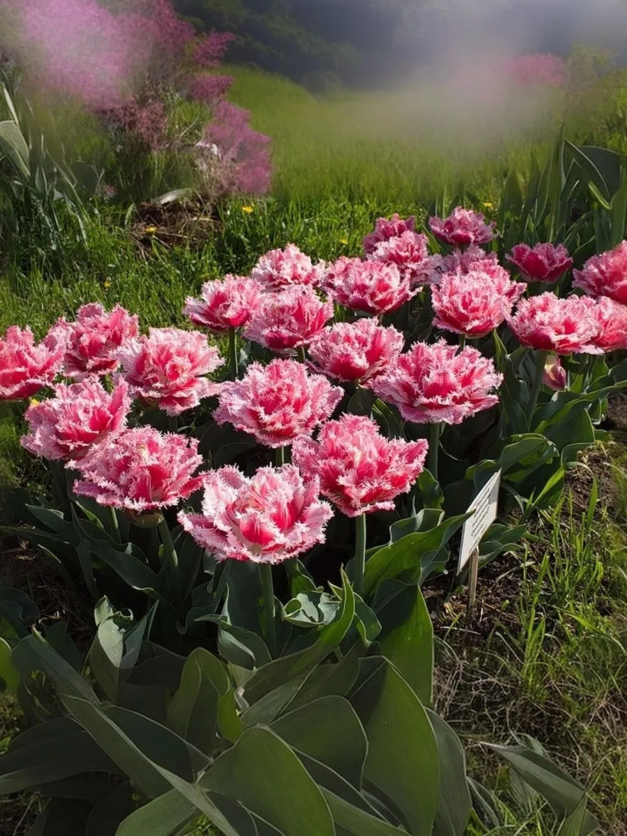 Тюльпан Брест Цветет в конце мая, образуя насыщенный розовый цветок, с красивой белой каймой и изящной бахромой на кончиках лепестков, высота бокала 8-9 см, диаметр 9-15 см. Отличительная особенность этих тюльпанов - игольчатая бахрома по краям лепестков, напоминающая иней. Высотой 40-50 см. Легко размножается, дает прекрасную срезку.