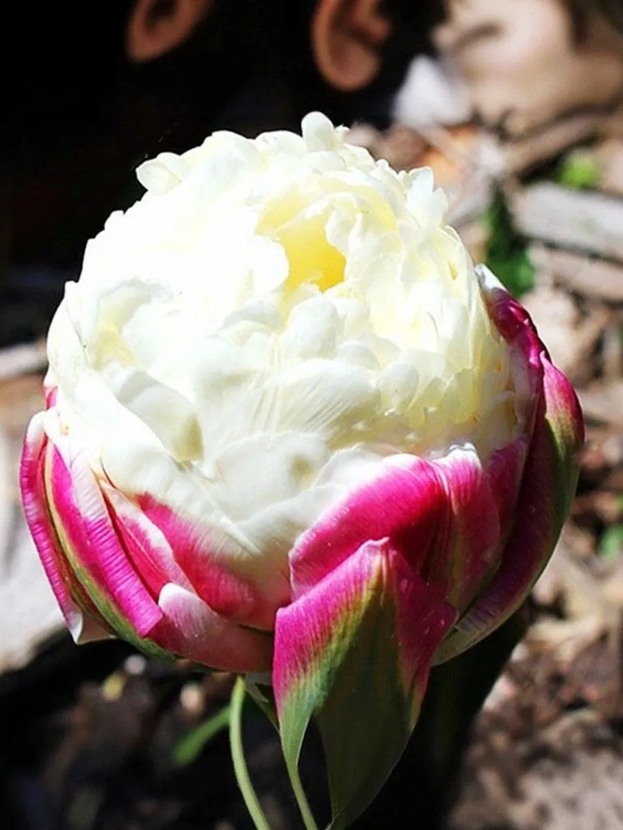 Тюльпан Айс Крим - махровый поздний сорт. Этот великолепный тюльпан оправдывает свое название, так как в период цветения действительно напоминает ванильное мороженое. Очень объёмные махровые цветки с белыми лепестками, укутаны в ярко розовые и зеленые слои. Высота тюльпана – 30-40 см, диаметр цветка – 8 см. Сроки цветения: — средина мая.